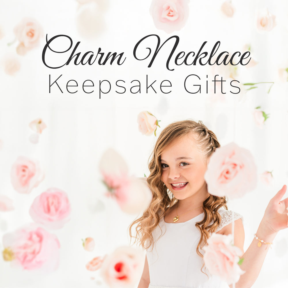 14K Gold-Plated Engraved Heart w/Cross Necklace for Kids