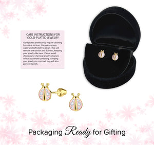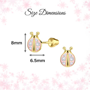 14K Gold-Plated Pink Ladybug Earrings for Little Girls