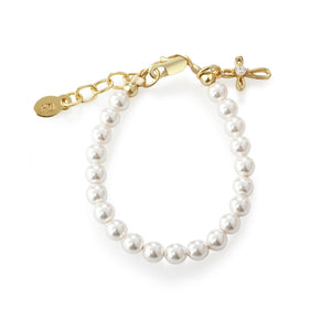 Children's 14K Gold-Plated Cross Baby Bracelet with Pearls