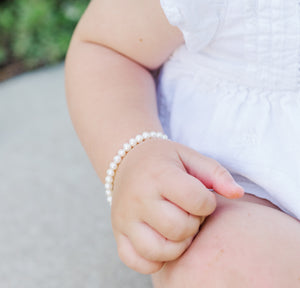 Special first communion bracelet featuring high-end Austrian simulated pearls and accented with a unique silver cross in the center. This precious bracelet for girls is perfect for first communion. Each bracelet measures 6 inches + .5 inch extension chain so it's adjustable for a perfect fit and comes in a beautiful gift box. A keepsake she will cherish Forever. This jewelry is hand-made in the USA.