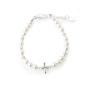 Sterling Silver High-End Austrian Simulated Pearl Baptism Cross Bracelet for Baby Girl