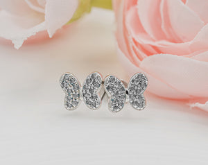 Sterling silver dainty pink crystal butterfly earrings with sparkling CZs. These sweet little earrings make a fun October birthstone gift. These feature screw backs so they stay put and protect the backs of her little ears. (measure 7.5 x 6.5mm)