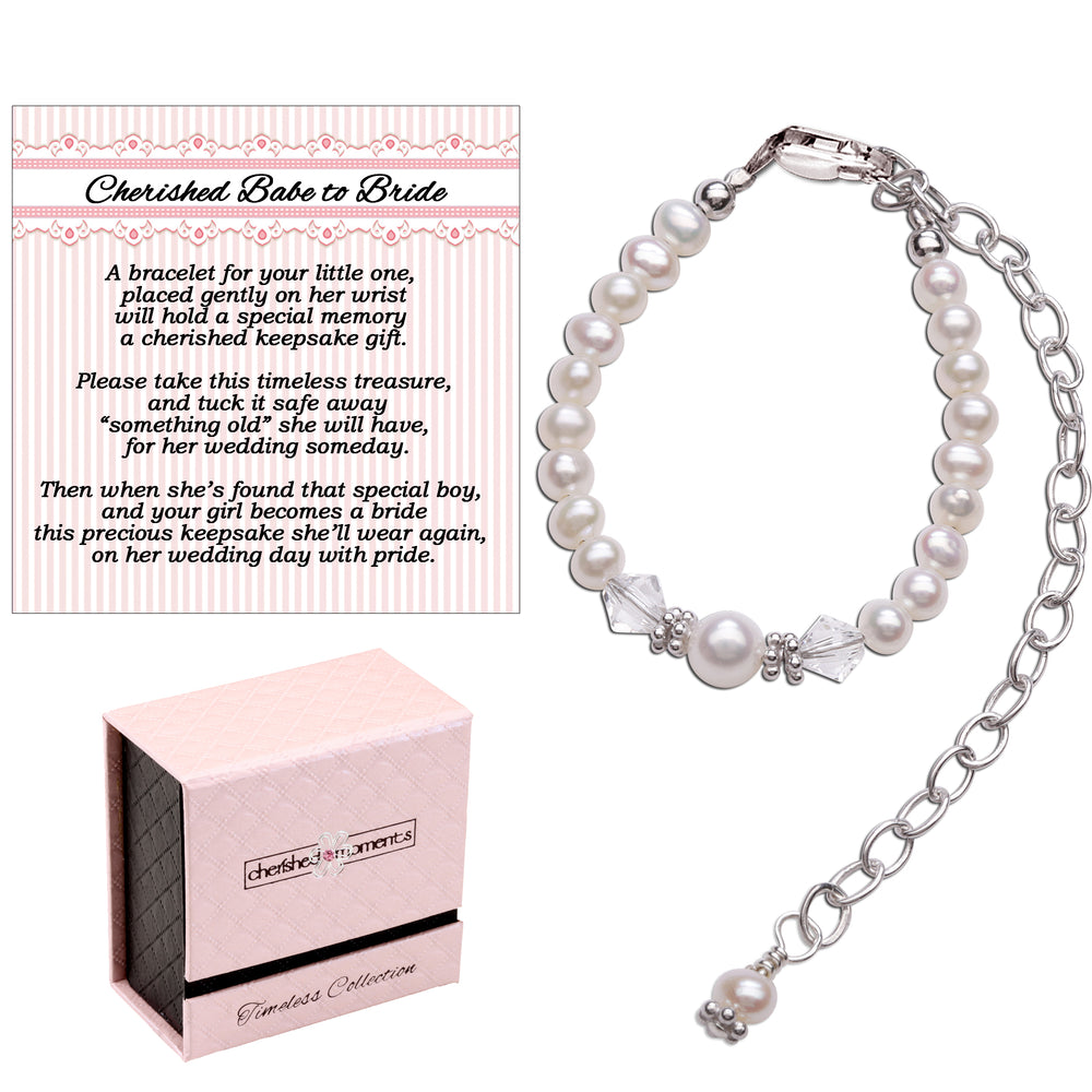Sterling silver and 14k gold-plated bracelets that can be worn as a baby and then tucked away and worn again as her something old when she becomes a bride. Keepsake Bracelets designed with an extension chain that accommodates both for baby and bride. Great newborn baby gift or meaningful baptism gift for baby girls or boys,