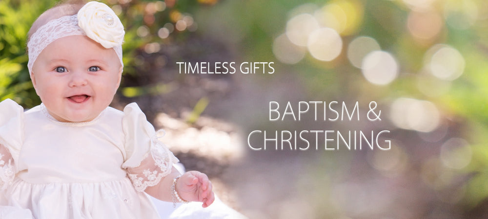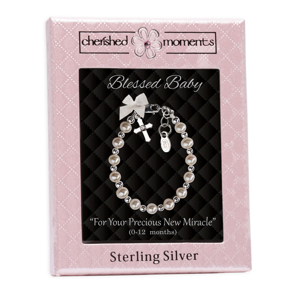 Sterling silver and 14K gold-plated baptism or christening bracelets for newborn infant baby girls or boys. These are precious keepsake gifts that will be treasured for years to come.
