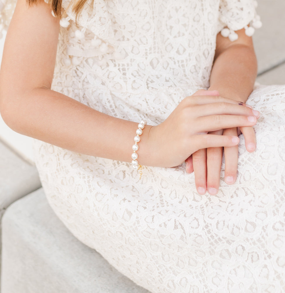 14K Gold Plated Bracelet with Chunky Simulated Pearls for Little Girls