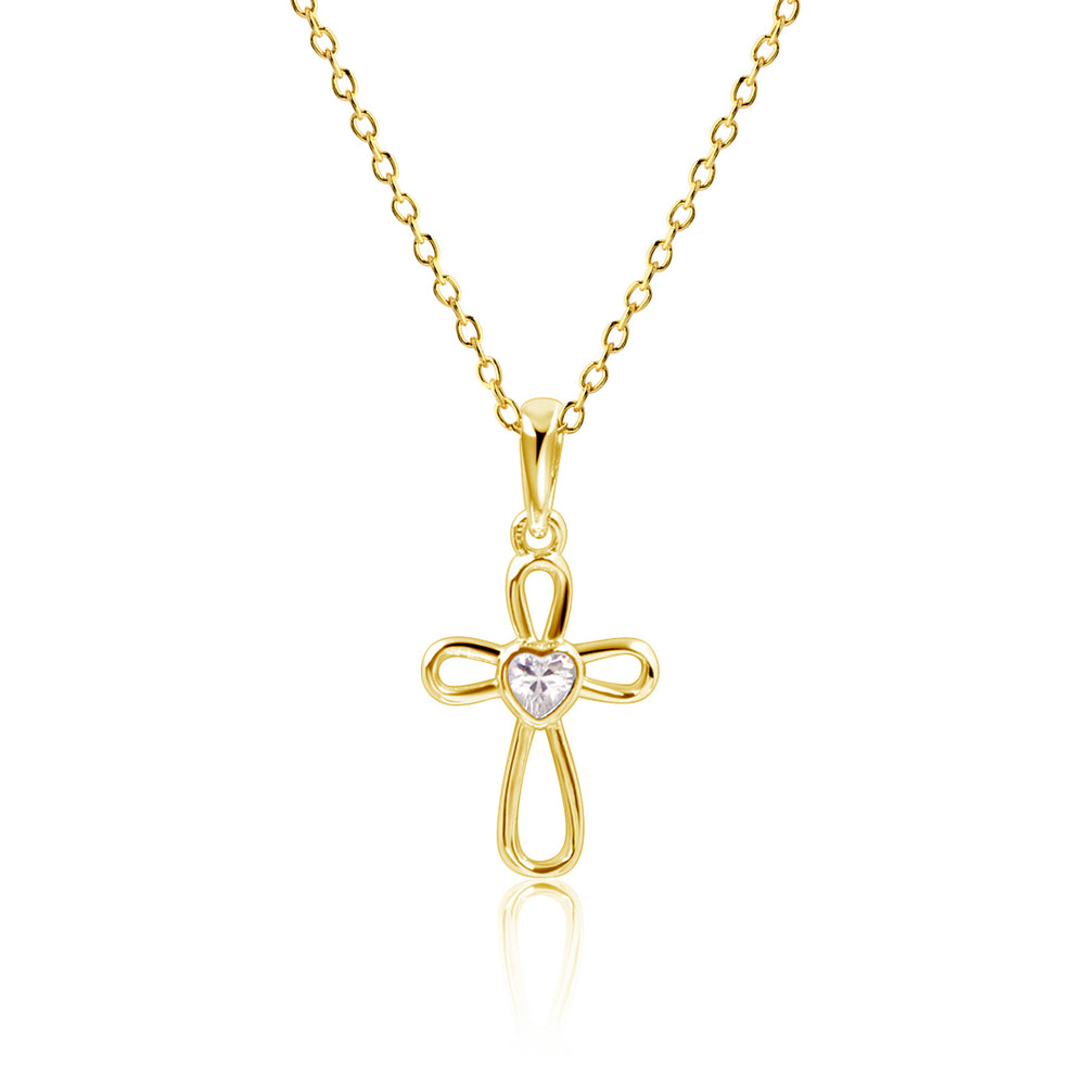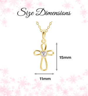 14K Gold-Plated Children's Infinity Cross Necklace with CZ Heart for Girls