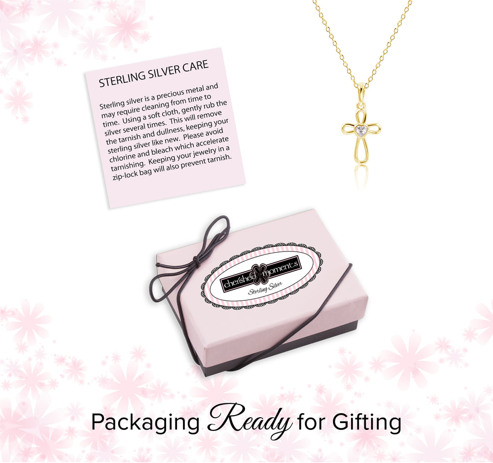 Beautiful 14K gold-plated charm necklace accented with a sparkling heart-shaped CZ stone. This high-quality necklace is made with .925 sterling silver and plated with 14K gold (never flashed with thin plating that wears off quickly). Perfect gift for those special occasions and makes a great baptism, christening, first communion or confirmation gift for girls.