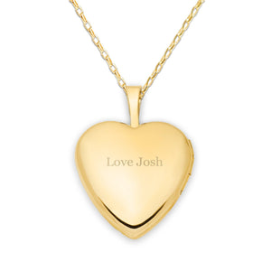 14K gold-plated (over sterling silver) girls personalized heart necklace that can be engraved with her name or sentiment. This customized locket comes on a 14 inch chain for kids or 16-18 inch adjustable chain for teens or women. This is an Italian rolo chain with high-quality clasp.