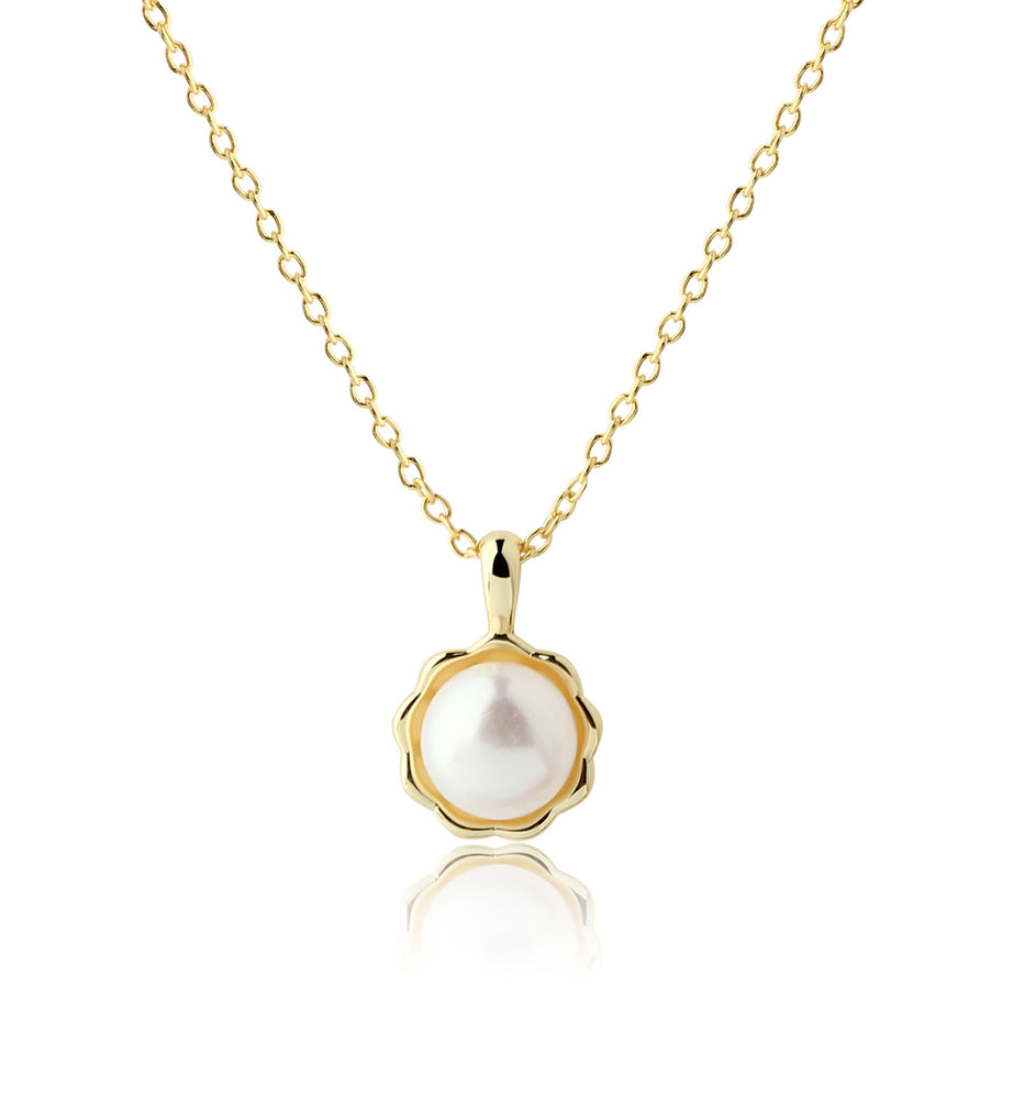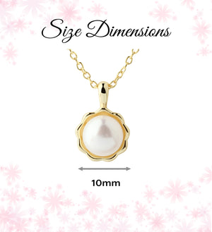 Children's 14K gold-plated soft freshwater pearl necklace with a dainty embellished edge. These necklaces make an adorable flower girl gift, pearl pendant for little girls, birthday gift or Easter present. This also makes a great keepsake for granddaughters and comes on high-quality Italian rolo chain with durable clasp.
