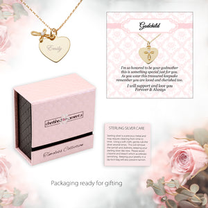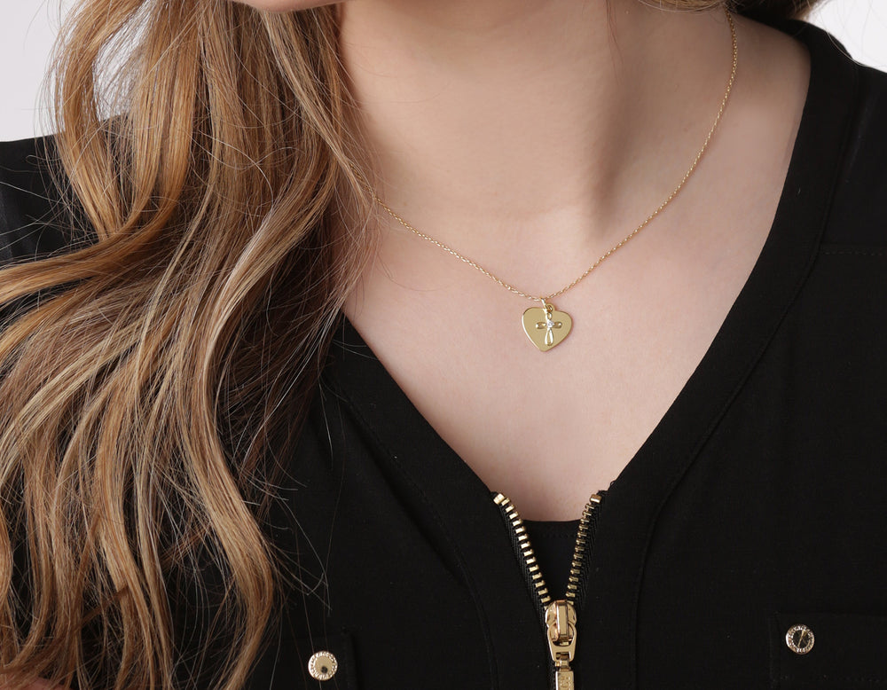 Personalized gift for your sweet goddaughter! This is a timeless keepsake necklace that makes a very special gift for her baptism, first holy communion, or confirmation. Gorgeous custom heart pendant accented with a dainty cross with sparkling CZ. Necklace has special anti-tarnish coating applied to prevent tarnish keeping it looking shiny and bright.
