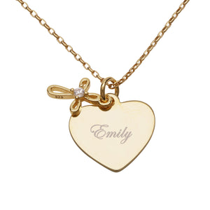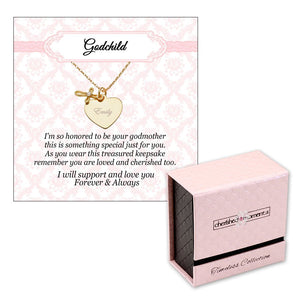14K Gold-Plated FREE Engraved Heart w/Cross Necklace for Godchild Gift