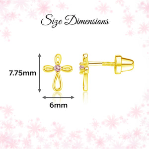 14K Gold-Plated Infinity Pink Cross Earrings for Baptism or Communion