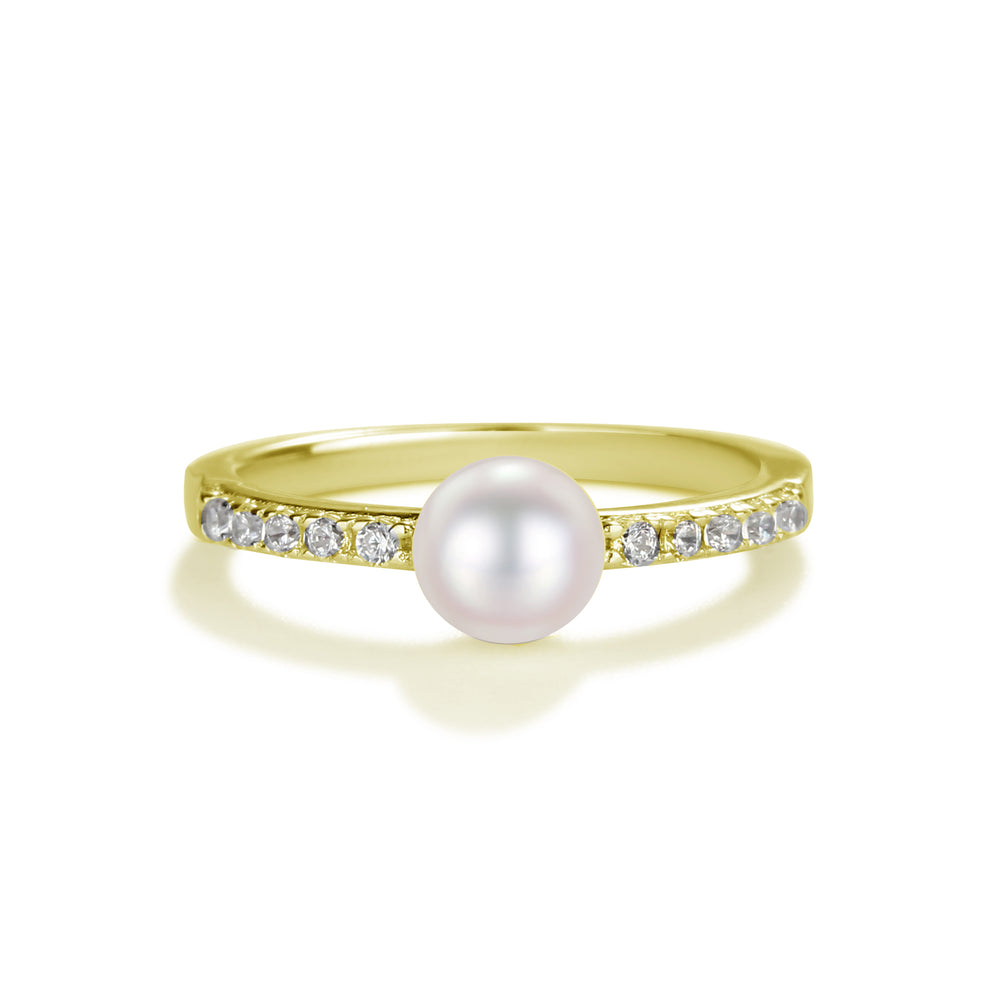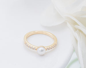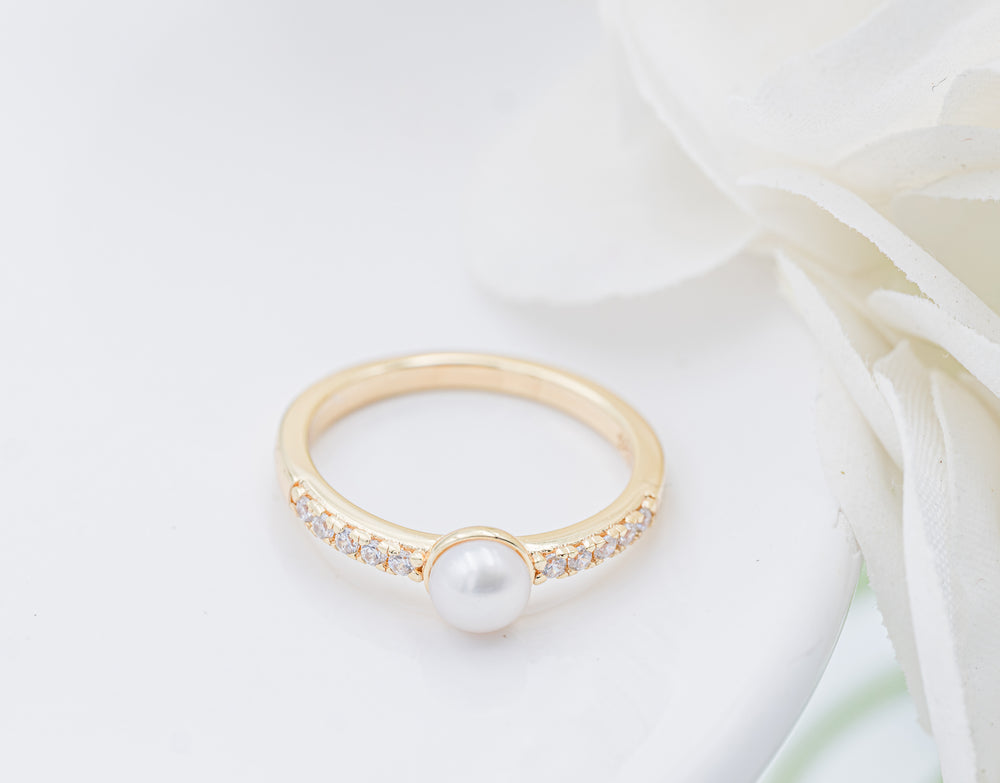 14K Gold-Plated Pearl Baby Ring with CZs for Kids