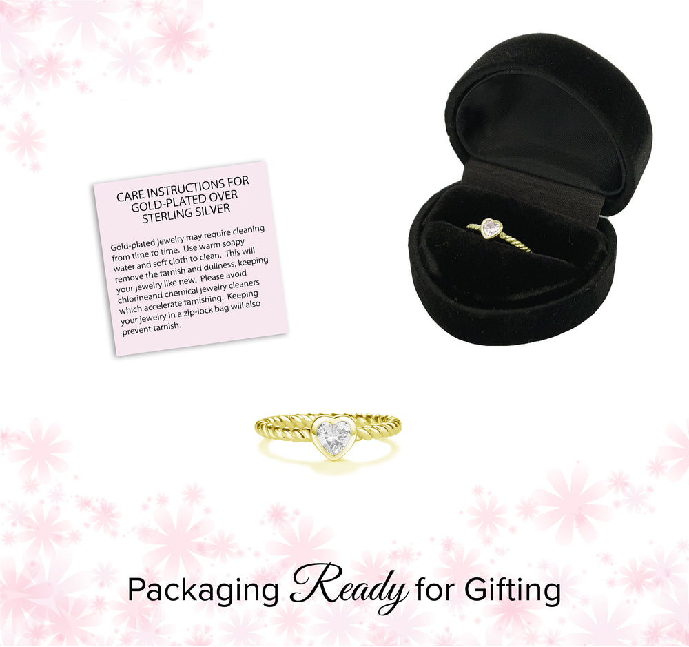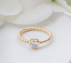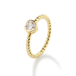 14K Gold-Plated Rope Ring with Clear CZ Heart for Girls