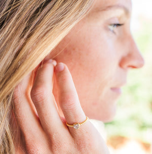 14K gold-plated baby ring with twisted rope band accented with a sparkling CZ heart. This is designed with all precious metals (sterling silver and plated with 14K gold). This makes a fun ring for your little princess! These are high-quality rings that are E-coated to prevent tarnish for little girls, toddlers, and kids. They are great pinky rings as well. This children's ring comes in a beautiful black velvet heart-shaped box and is available in sizes 1-5.