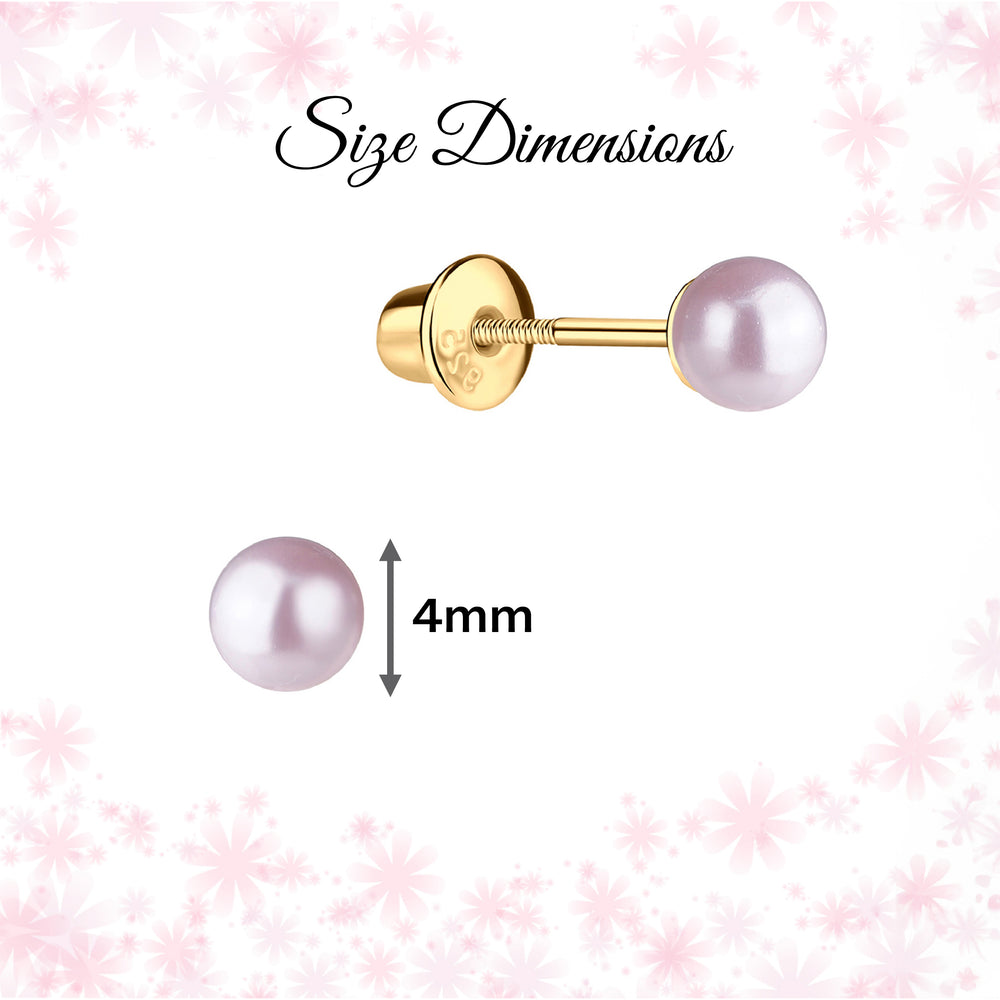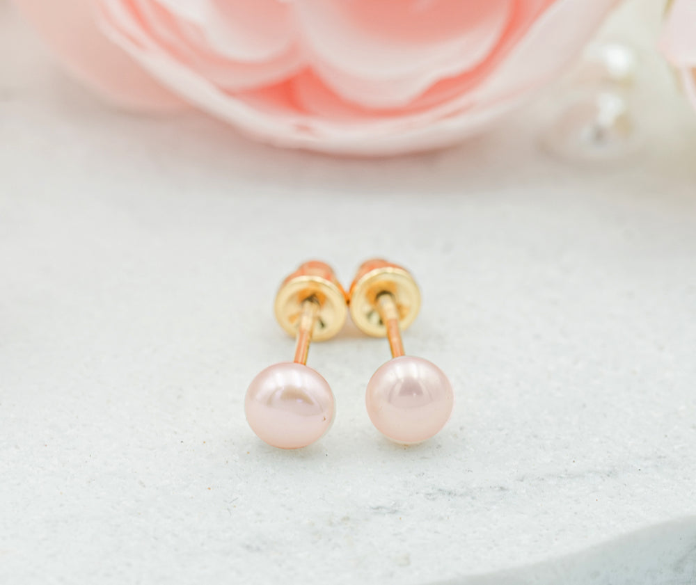 14K Gold-Plated Pink Pearl Earrings for Infants and Kids
