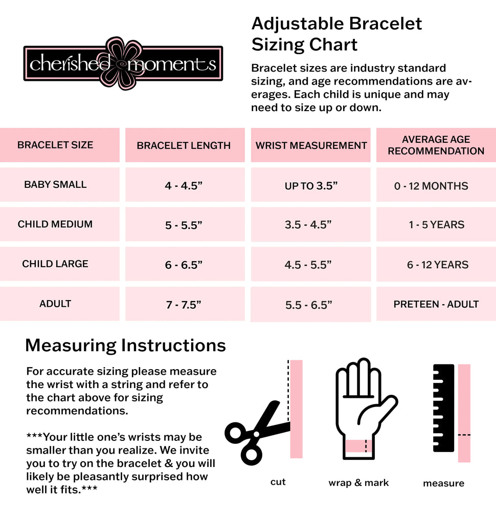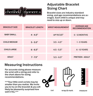 Bracelet sizing: https://cherishedmomentsshop.com/pages/wrist-sizing