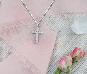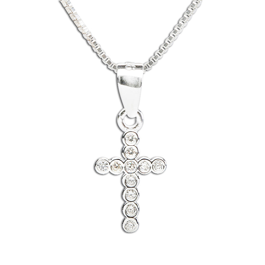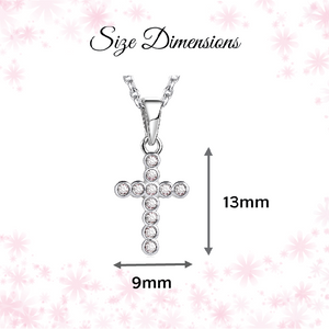 Gorgeous sparkling sterling silver cross charm necklace with CZs on a 14" chain or 16-18" Italian chain with a high-quality lobster clasp. Precious gift for any occasion and makes a great First Communion gift too! This is a special keepsake gift for toddlers, kids, and little girls and comes in a beautiful gift box that kids love.