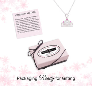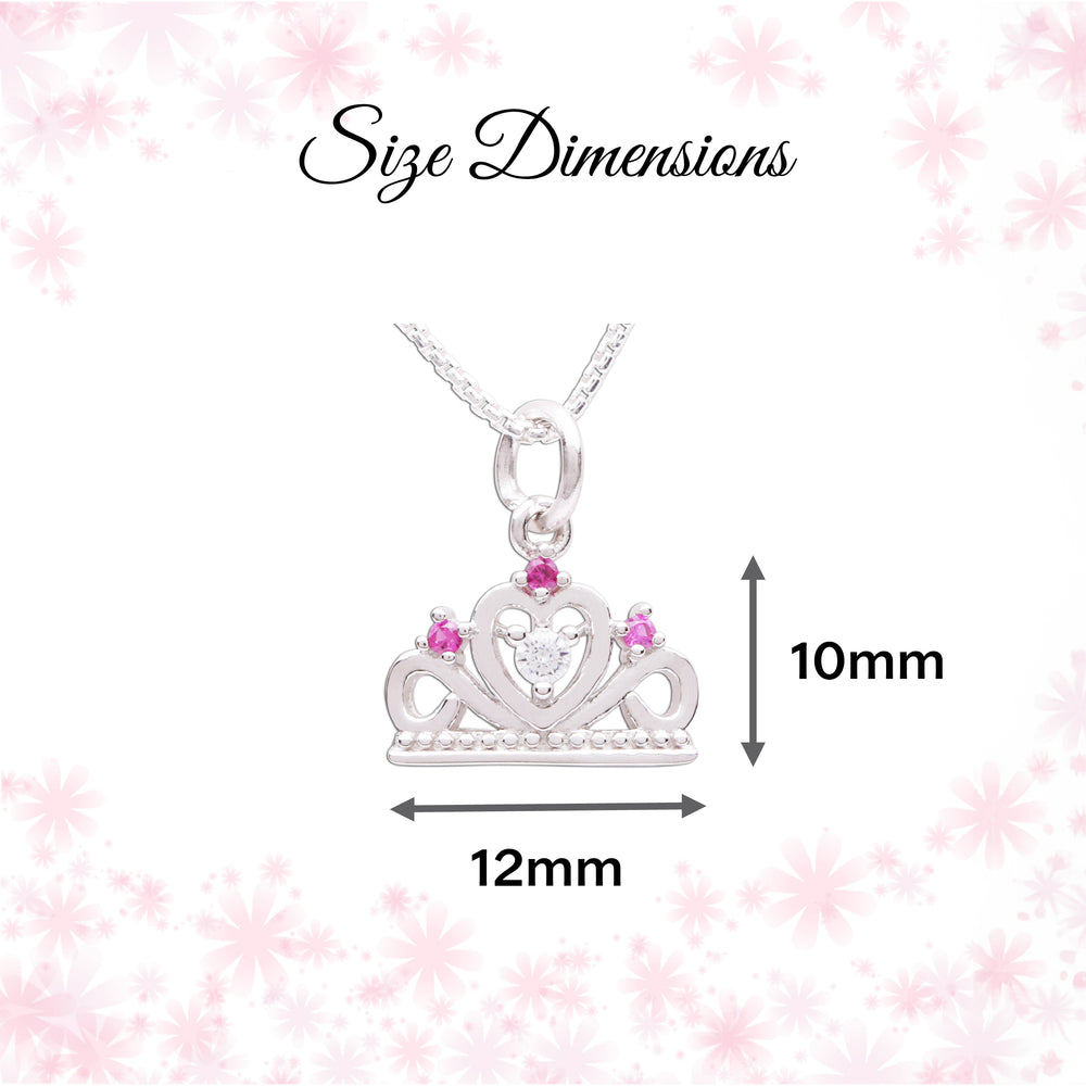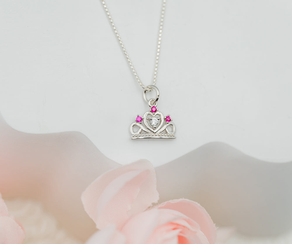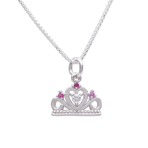 Make her feel like a princess with this fun and playful tiara charm necklace! Perfect for toddlers and little girls, this delightful necklace features a sparkling tiara charm accented with pink and clear cubic zirconia (CZ) stones for that magical shimmer she’ll adore. Crafted from sterling silver. Perfect gift for princess birthday parties or as party favor, or for that granddaughter, cousin or friend that loves to sparkle!