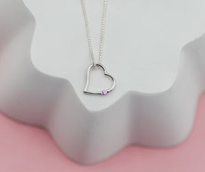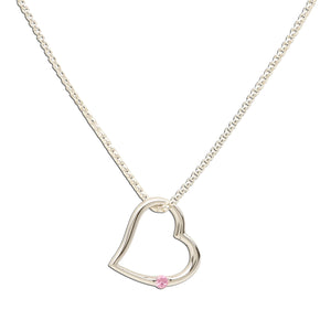 Sterling Silver Girl's Open Heart Pink Sapphire Necklace for Kids