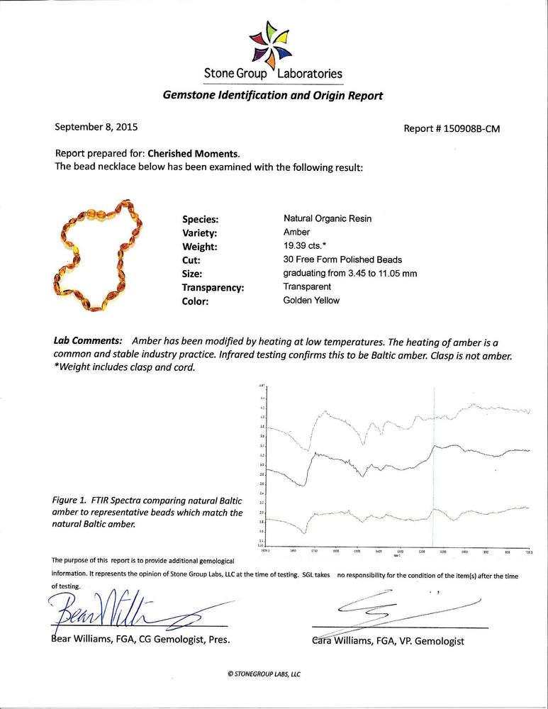 From our "Nature's Beads of Love" Collection - Genuine Baltic amber teething necklace with polished beads (Lemon).  Comfort your sweet baby with these healing amber beads which can reduce drooling and pain when teething.  These amber beads come from Lithuania and are certified 100% natural Baltic amber with testing verification from third-party laboratory.