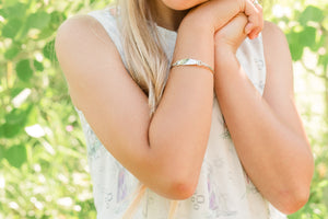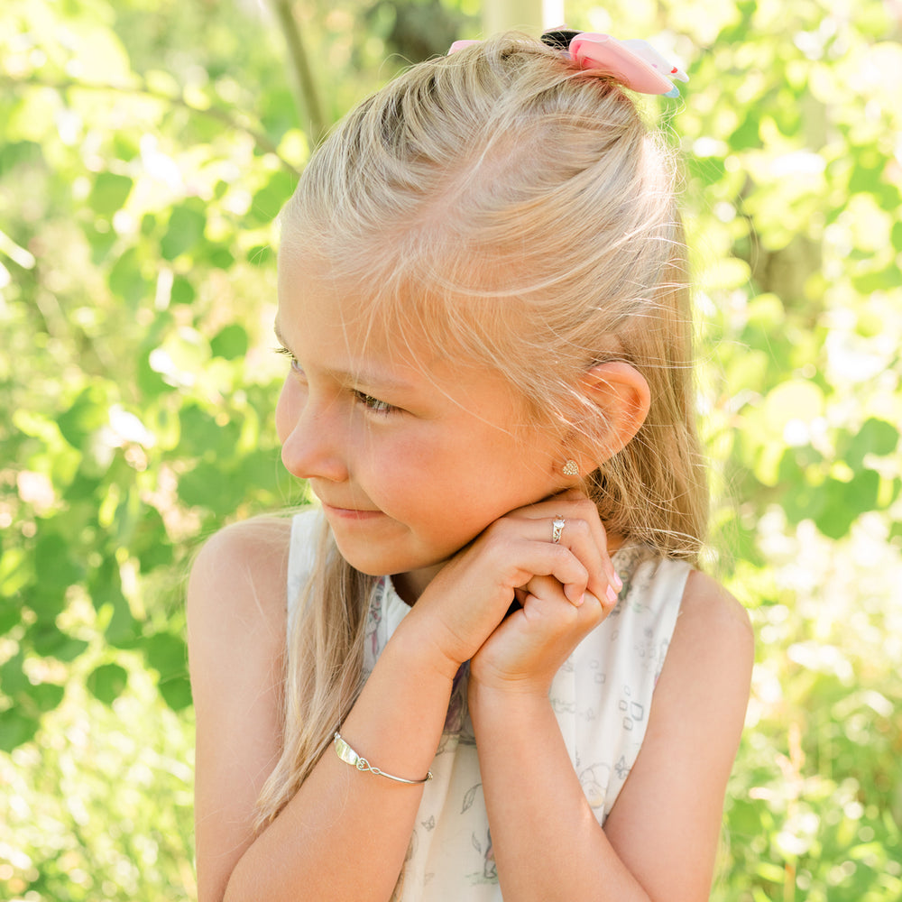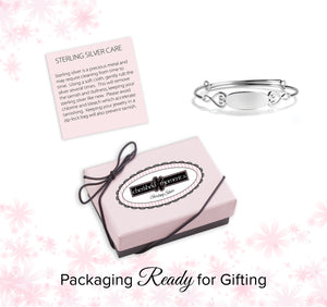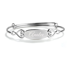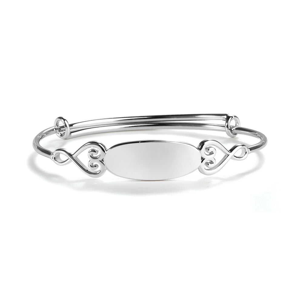 Bangle (Adjustable) - Sterling Silver Oval Bangle Bracelet for Kids with Hearts
