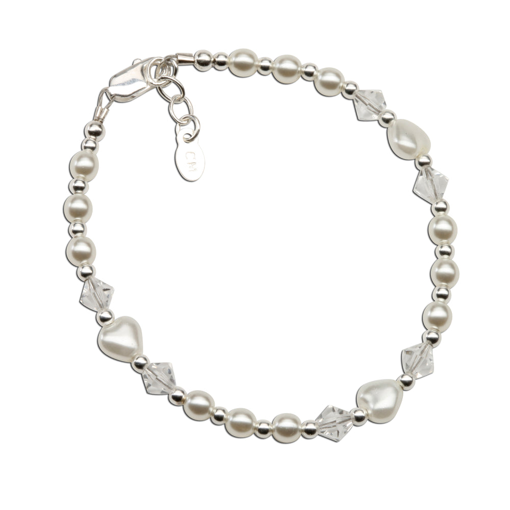 Baptism Bracelet with Pearl Hearts (6-12 years)