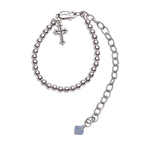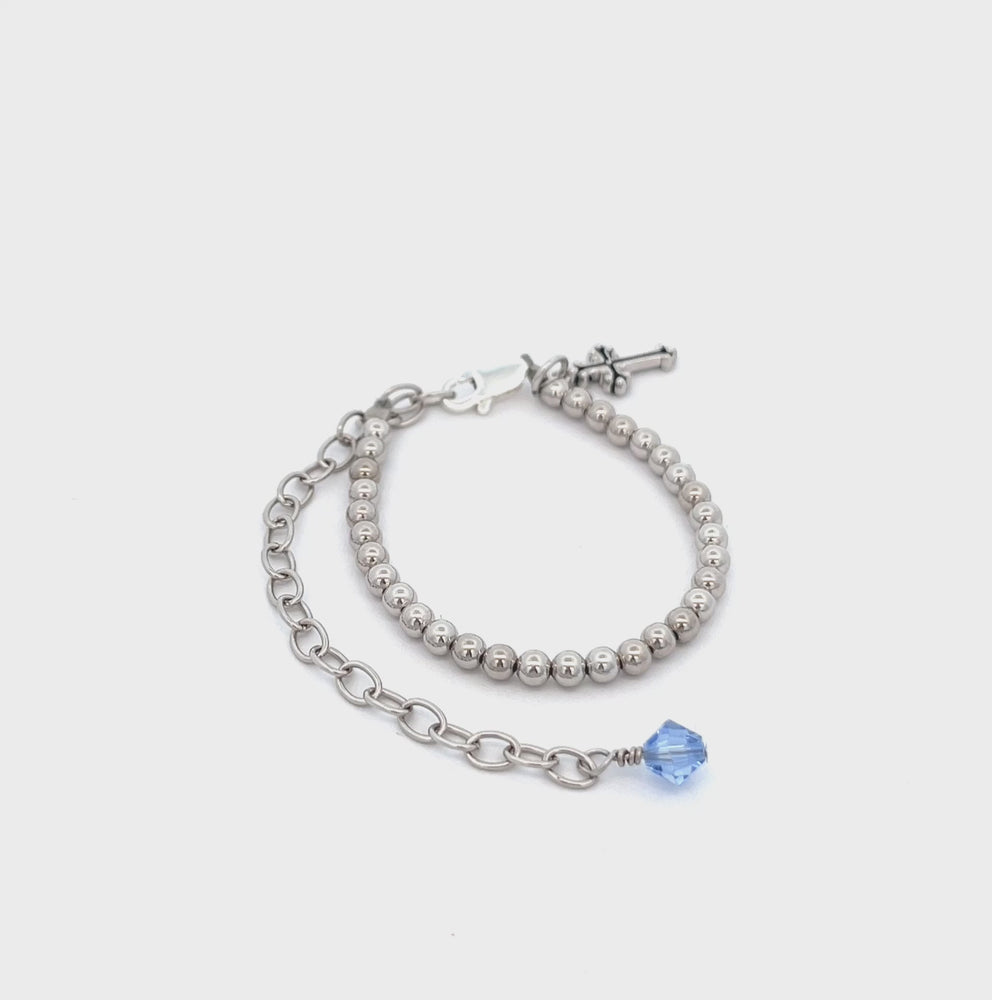 This sweet keepsake from our Timeless Collection. Sterling silver keepsake christening or dedication gift "Blessing to Bride" bracelet gift for boys. This special keepsake will be a treasure that can be worn on his christening day and then tucked away and given as a special gift for his bride someday as her "something old and something blue". This is designed with .925 sterling silver and beautiful blue high-end crystal and is hand-beaded here in the USA. This comes with a sweet poem and includes a place to write his name and special dates along with a special gift box to keep it safe for that special day. This is an heirloom they both will cherish forever.