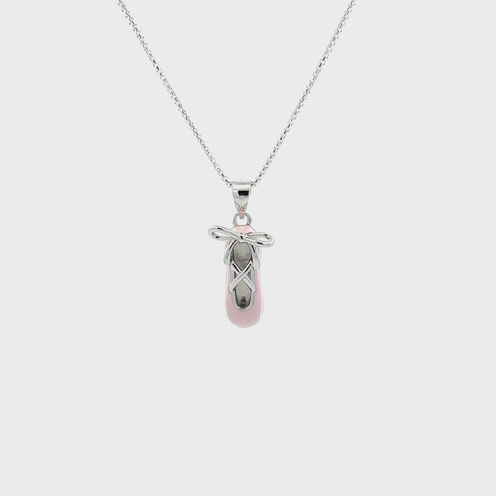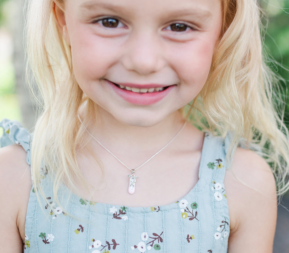 Children's Sterling Silver Pink Ballet Slipper Necklace for Kids and Girls