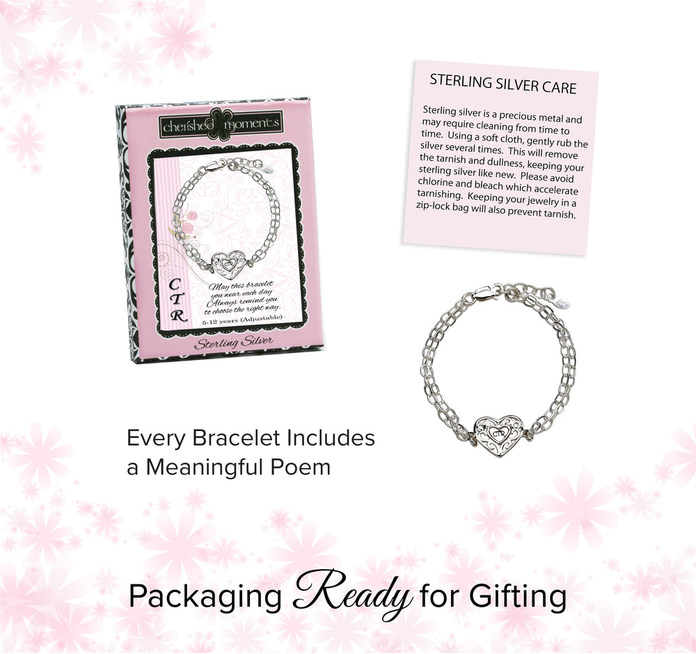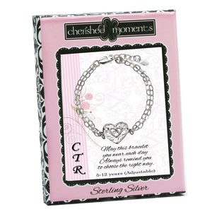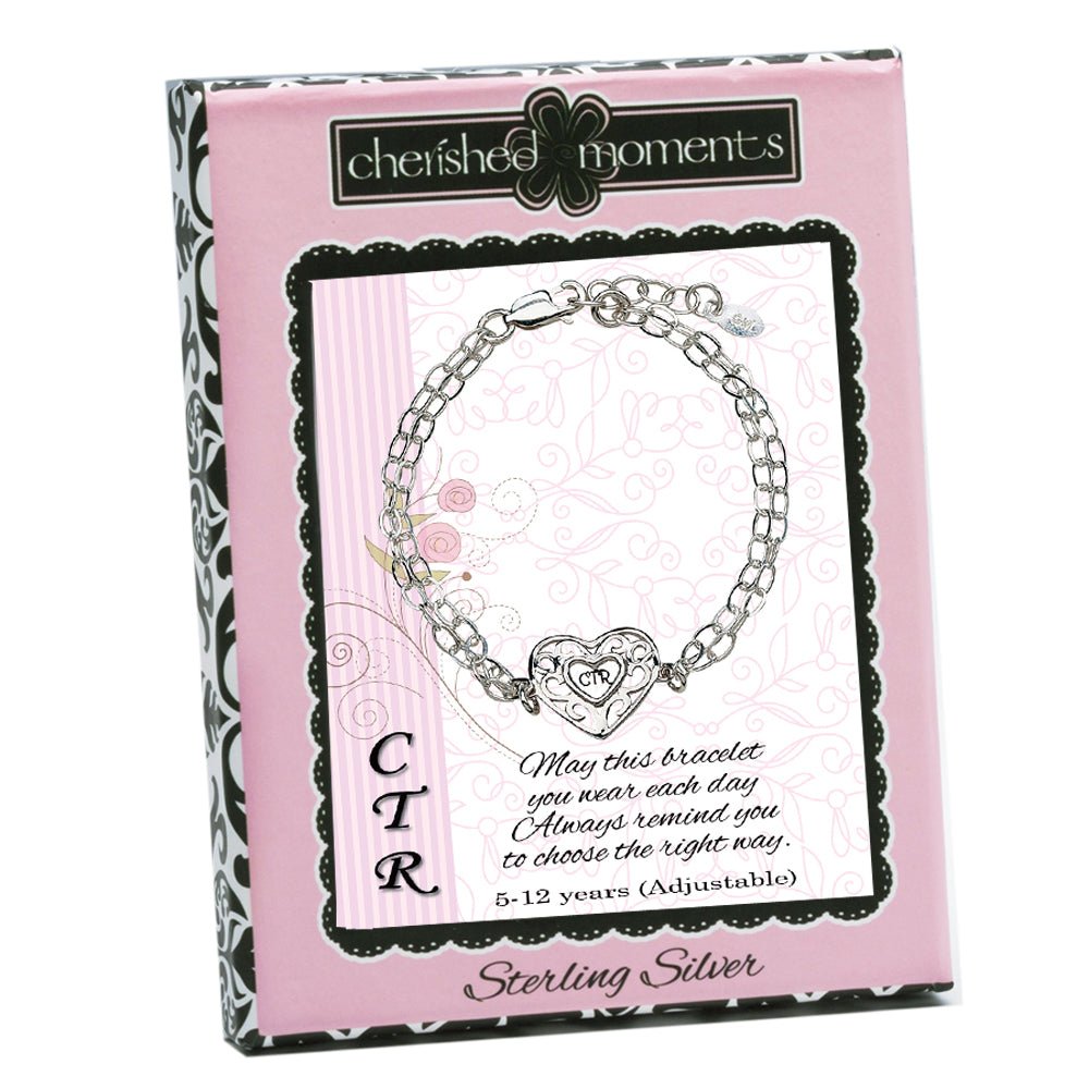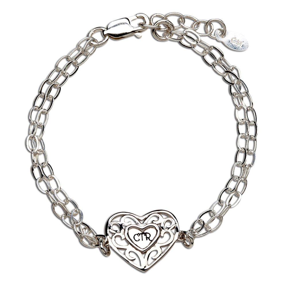 Great LDS Baptism Gift! Beautiful sterling silver CTR "Choose The Right" bracelet for that special occasion accented with a beautiful silver heart CTR Charm in the Center! This is adjustable in length 6-6 1/2" and will be a keepsake she will treasure forever!
