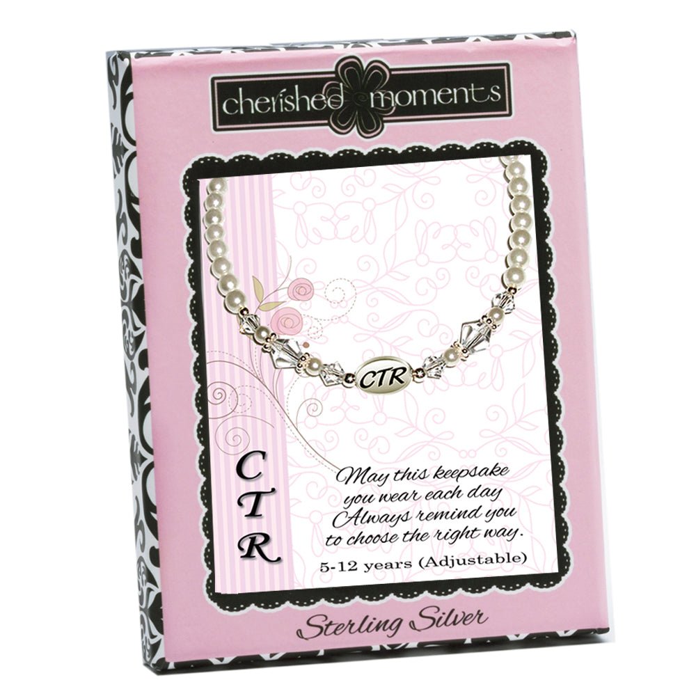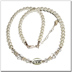 Great LDS Baptism Gift! Beautiful sterling silver CTR "Choose The Right" necklace for that special occasion with beautiful simulated pearls and sparkling crystals featuring a CTR Charm in the Center! This is adjustable in length 12-14" and will be a keepsake she will treasure forever!