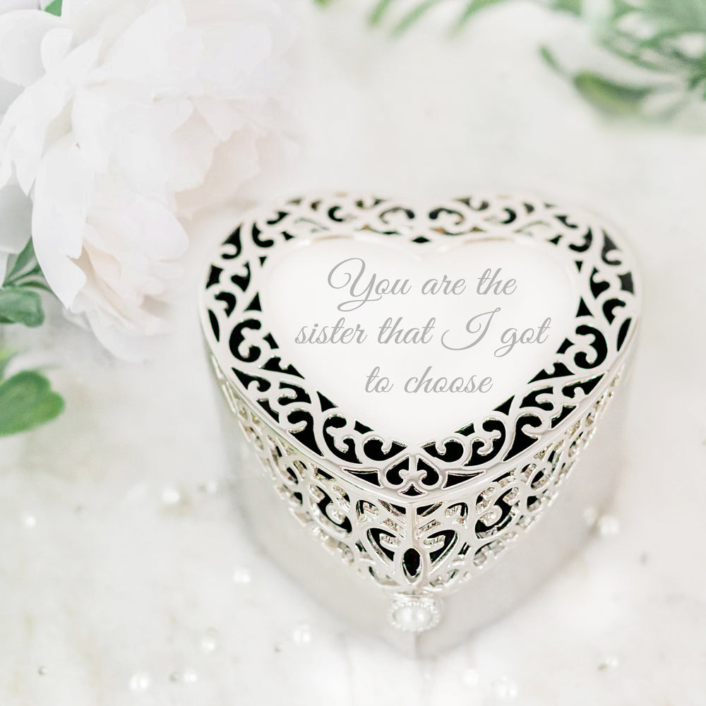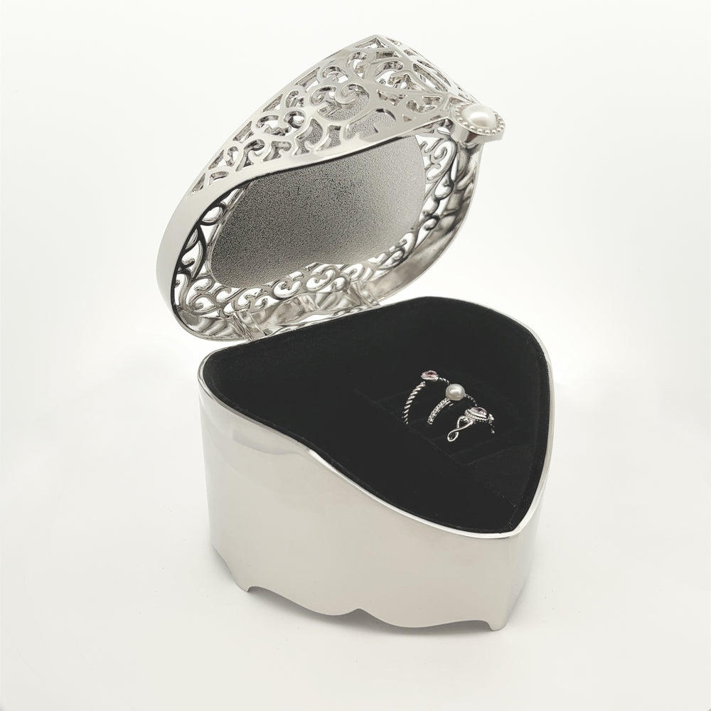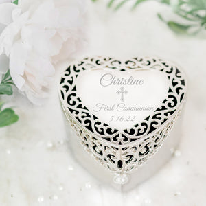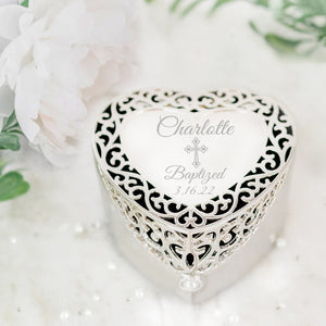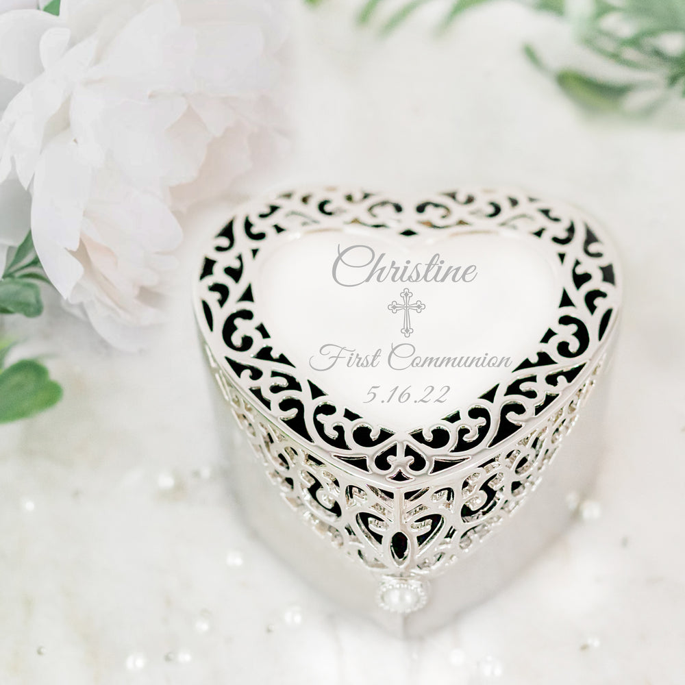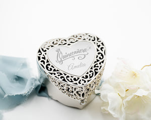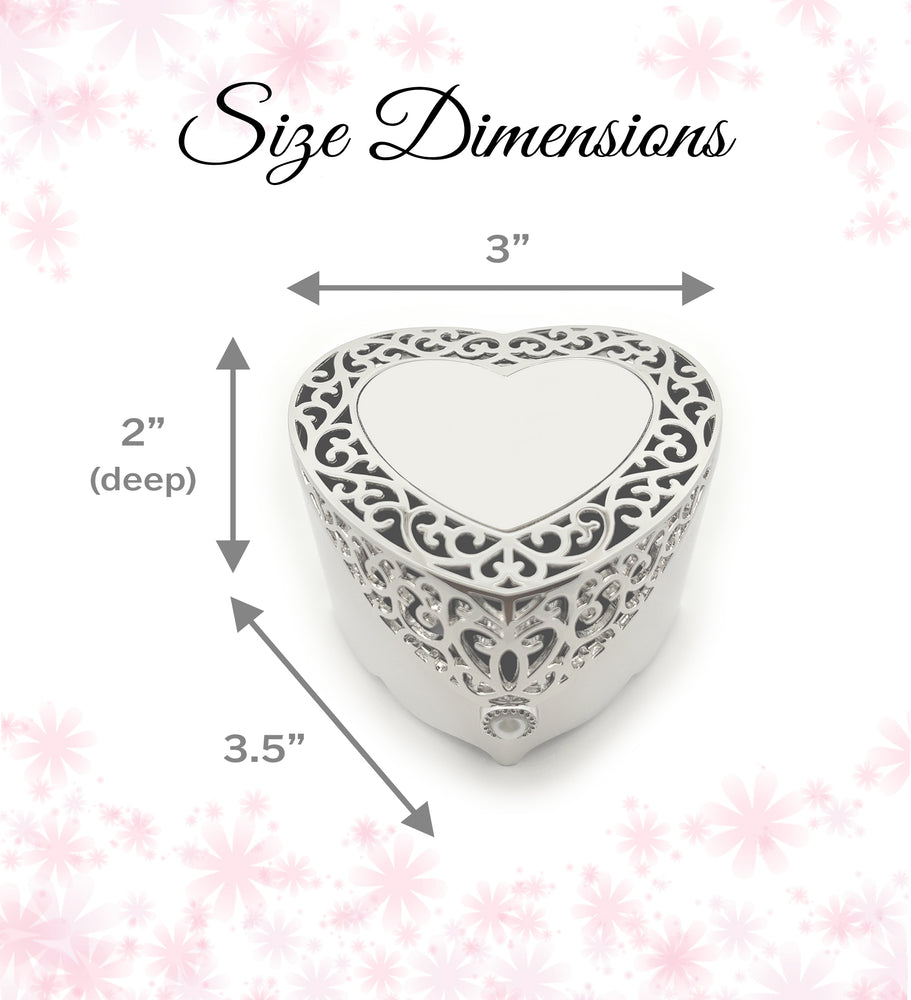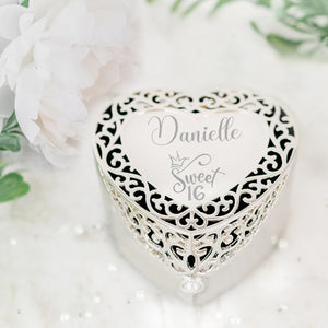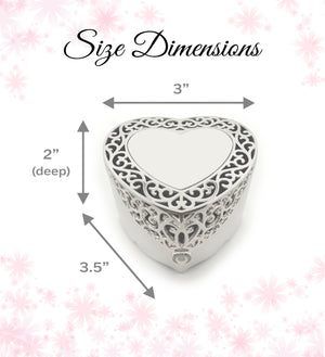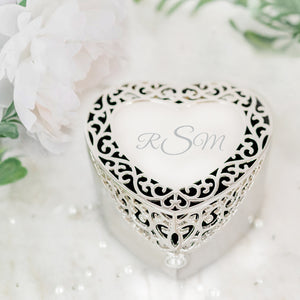 Custom Silver Filigree Heart Jewelry Box with Engraving for Girls