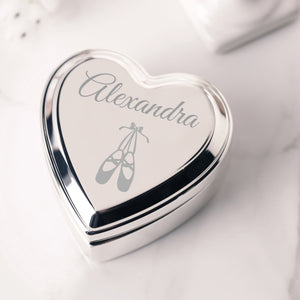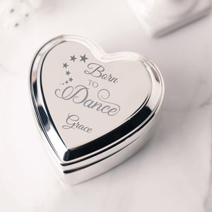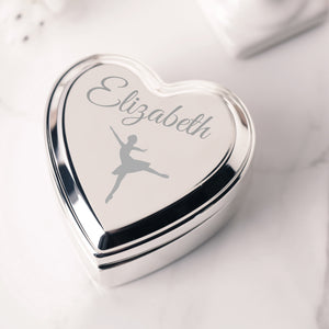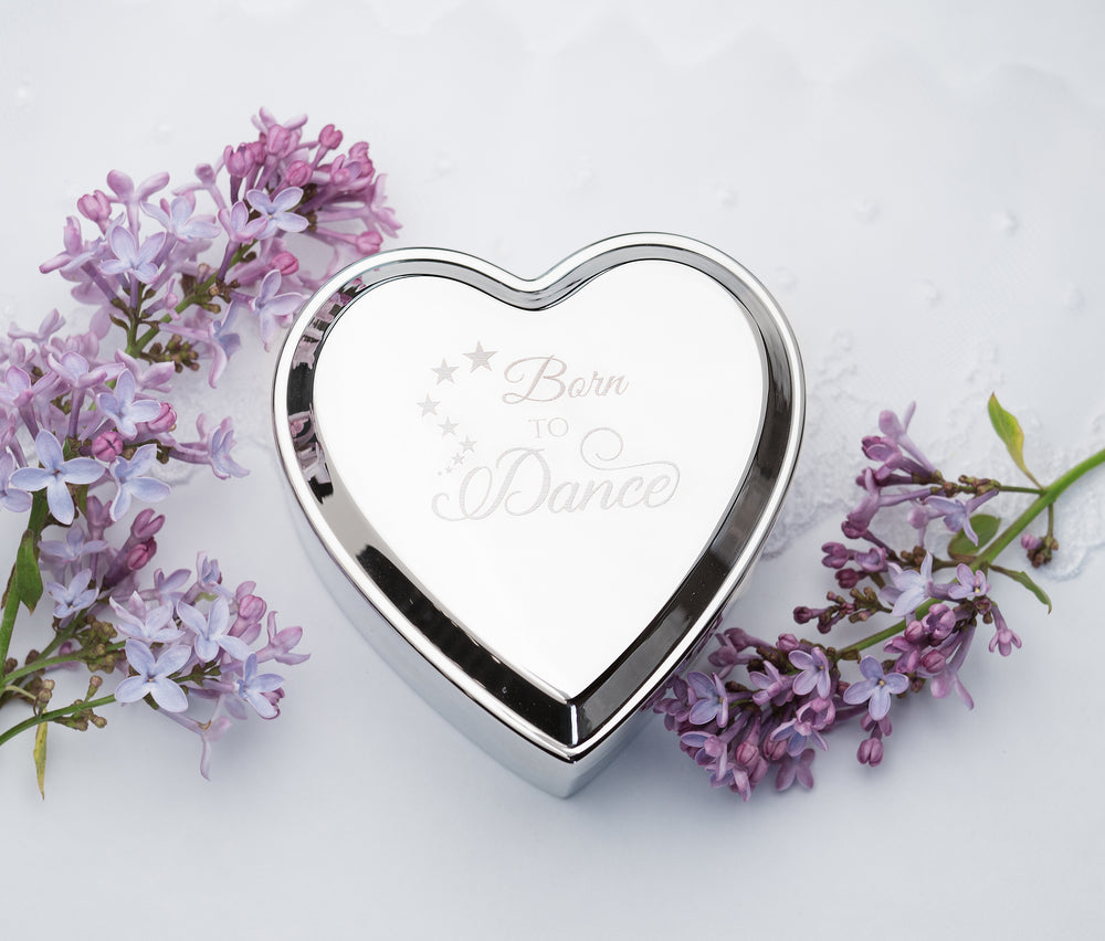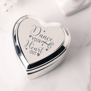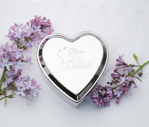 Custom Silver Heart Dance Jewelry Box with Engraving for Girls