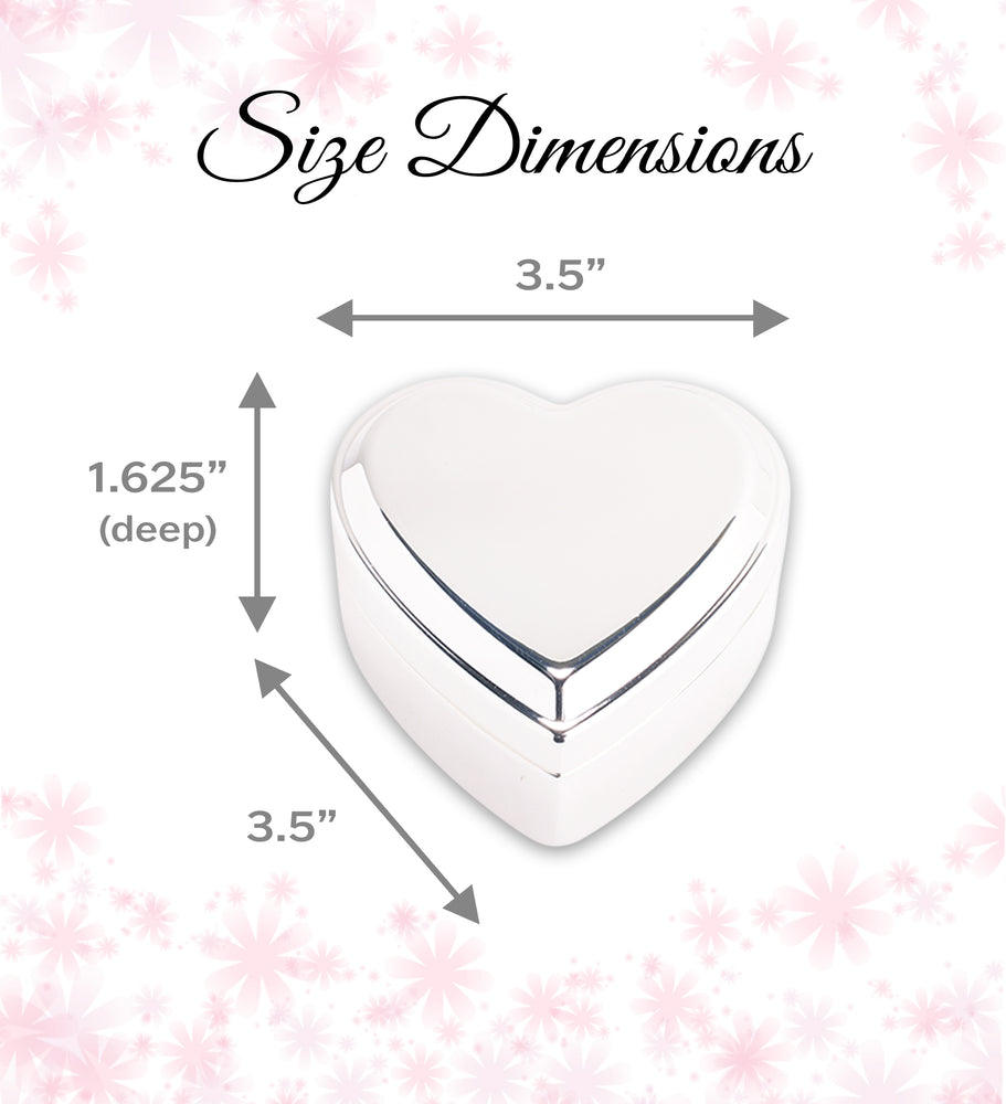 ♥PREMIUM QUALITY - Keep her beautiful jewelry safe and organized in this heart-shaped silver plated jewelry box. This special box measures 3.5" x 3.5" x 1.625 and is lined with soft felt to prevent scratches to her keepsakes.