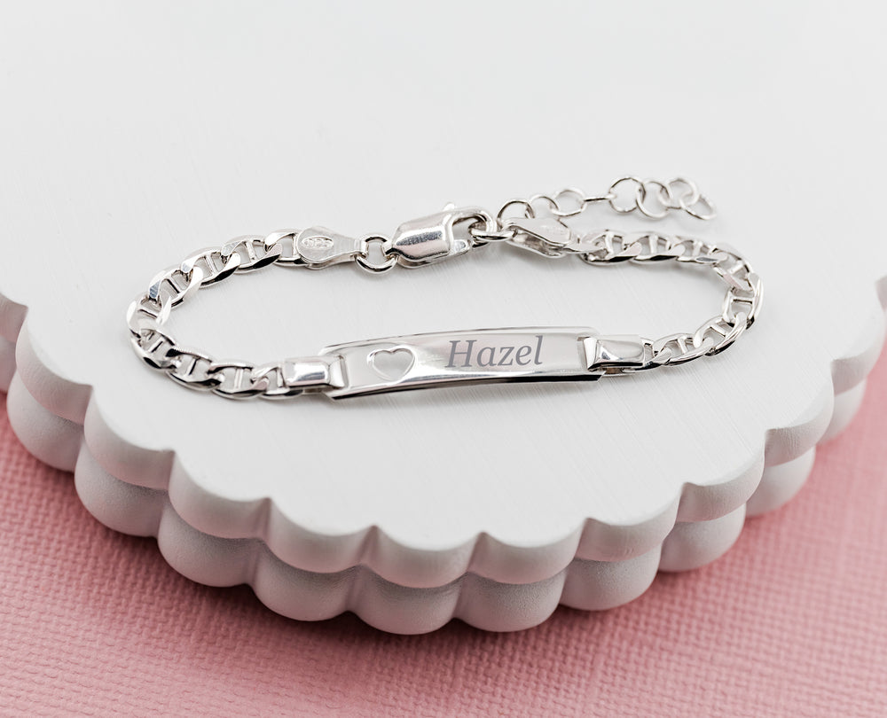 14K Gold-Plated or Sterling Silver I.D. Bracelet for Kids with FREE Engraving-Heart
