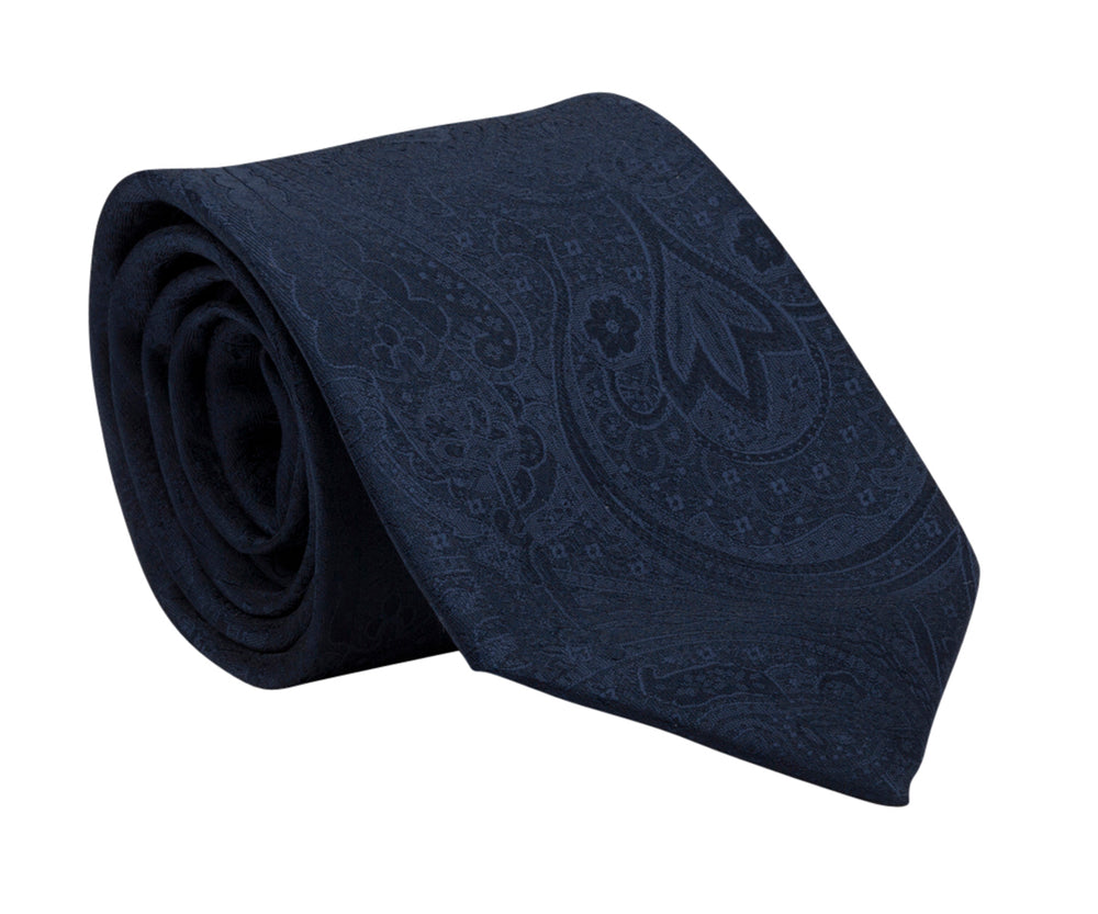 Boys Navy Paisley tie from our "Paisley Collection" of on-trend boys formal wear, this delicately hand crafted full length tie makes a great LDS Baptism gift. Derived from high quality woven polyester in a chic navy blue paisley pattern. This gift set includes a silver CTR pin and comes packaged as a gift set. Beautiful quality and very well made. (45 inch youth length - standard width)