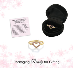 14k gold-plated (over sterling silver) baby ring with heart and unique band accented with a sparkling pink CZ stones. This dainty ring makes a special keepsake baby gift or wonderful birthday gifts for little girls, and toddlers. Fun Valentines gift for girls or teens.