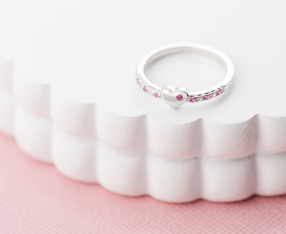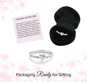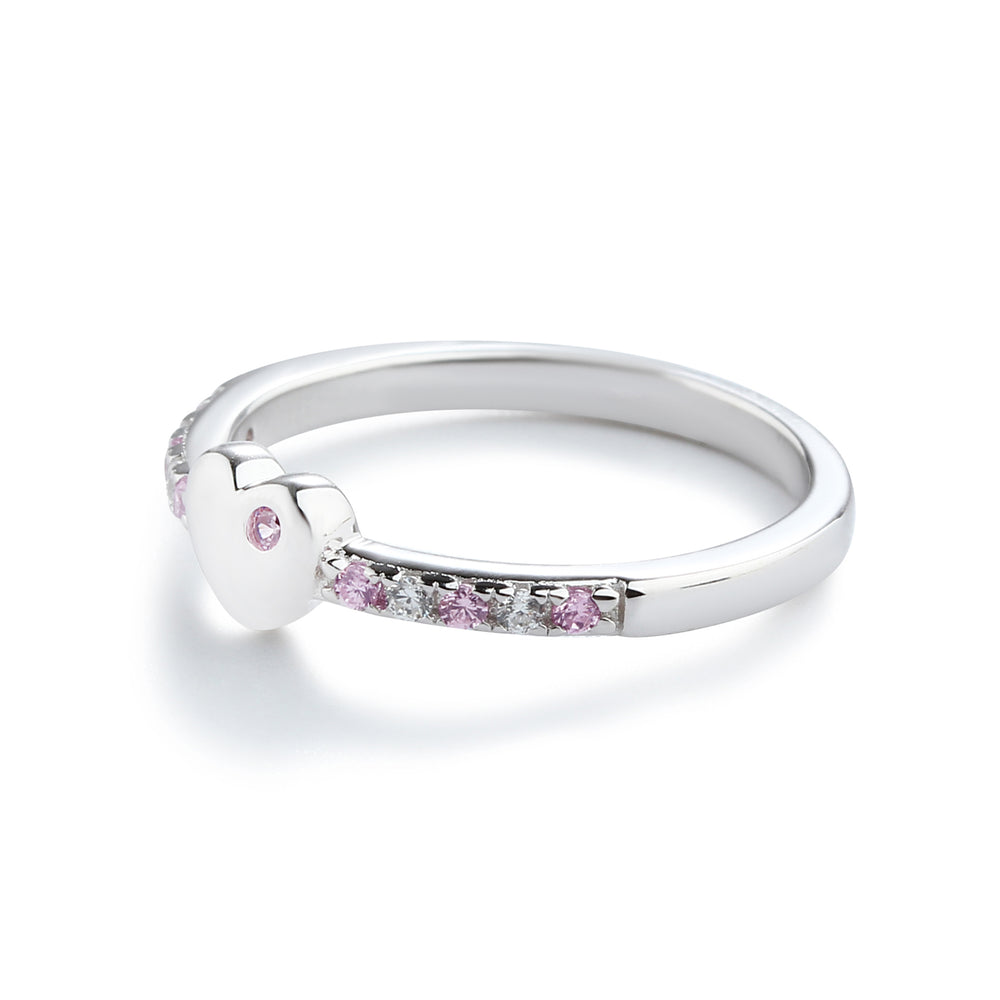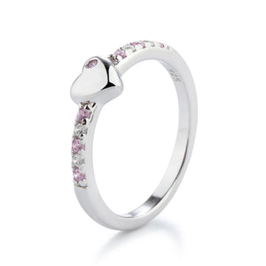 Little Girls Sterling Silver Puff Heart Ring with Pink and Clear CZ's