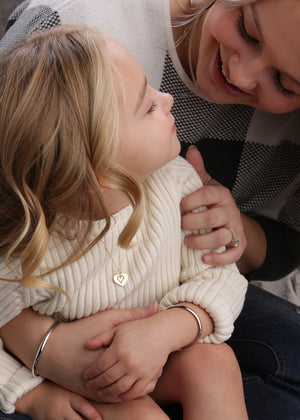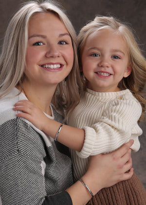 These bangles are rhodium plated to prevent tarnish for everlasting quality. Mother's bracelet is 57mm and the daughter's is available in three sizes. A very heart warming gift for any mother and daughter. Perfect for New Baby Gift or Baptisms! Bracelets come in a beautiful "Timeless Collection" gift box.