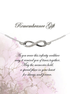 Remembrance sympathy and condolences gift sterling silver infinity necklace.  This keepsake necklace is 18 inches and will be something special they will treasure forever.