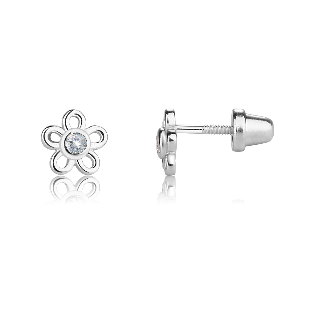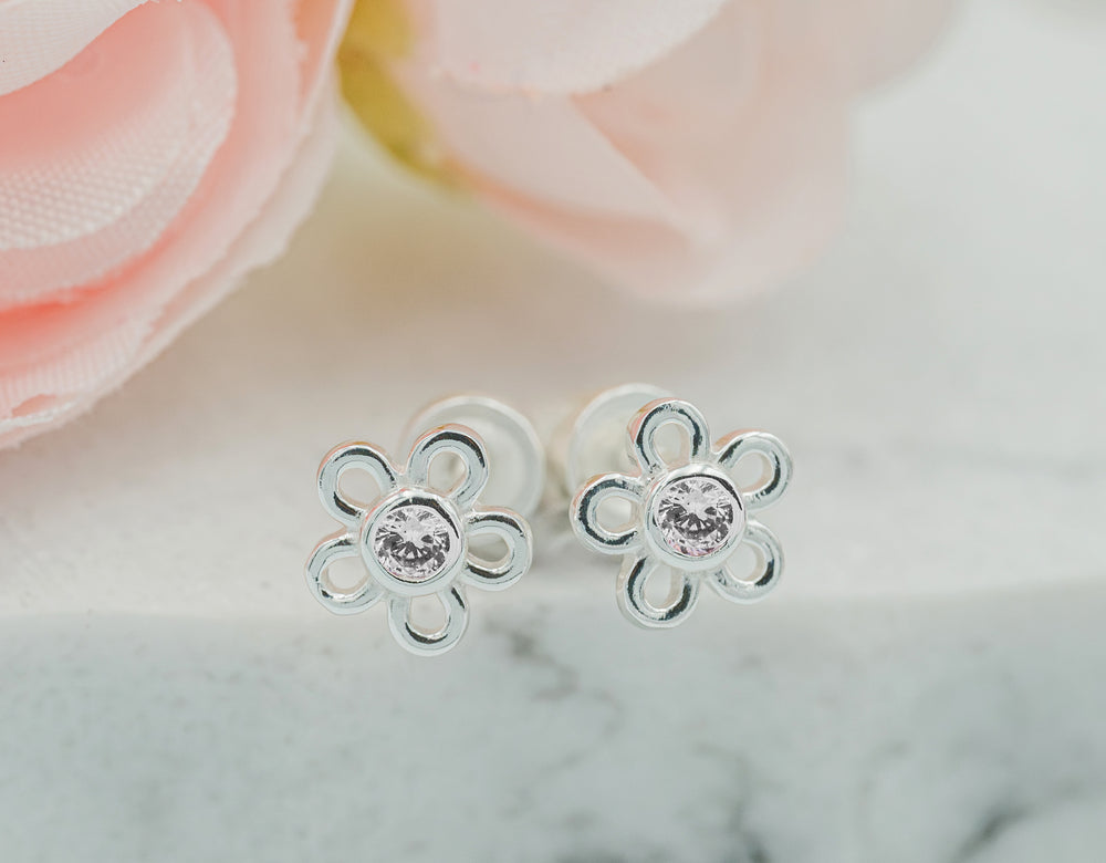 Sterling Silver Clear Outline Daisy Earrings for Little Girls