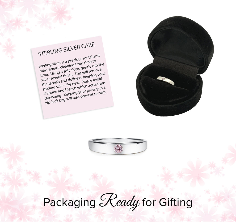 Sterling Silver baby ring featuring a simple silver band with a pink CZ stone and October Birthstone. This makes a special keepsake baby gift or wonderful birthday gifts for babies, toddlers, kids, and children. Ring comes in a beautiful black velvet heart-shaped box. Available in sizes 1-4