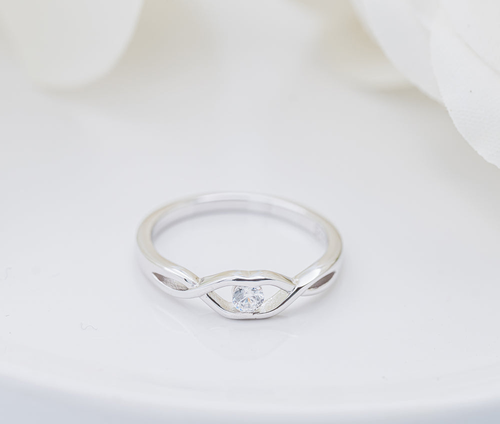 Sterling Silver Baby Ring with Twisted Band and Clear CZ for Girls