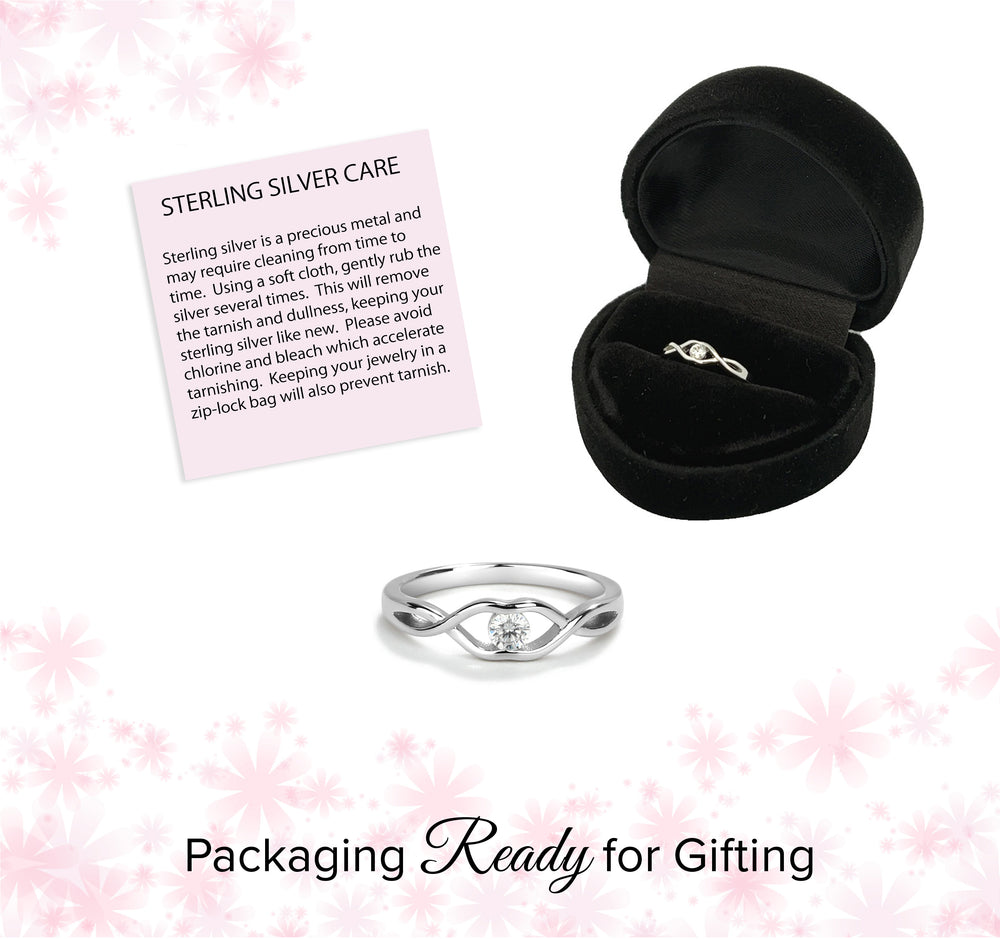Sterling Silver baby ring featuring a twisted silver band and a clear CZ stone for April Birthstone. This makes a special keepsake baby gift or wonderful birthday gifts for toddlers, kids, and children. Ring comes in a beautiful black velvet heart-shaped box. Available in sizes 1-4