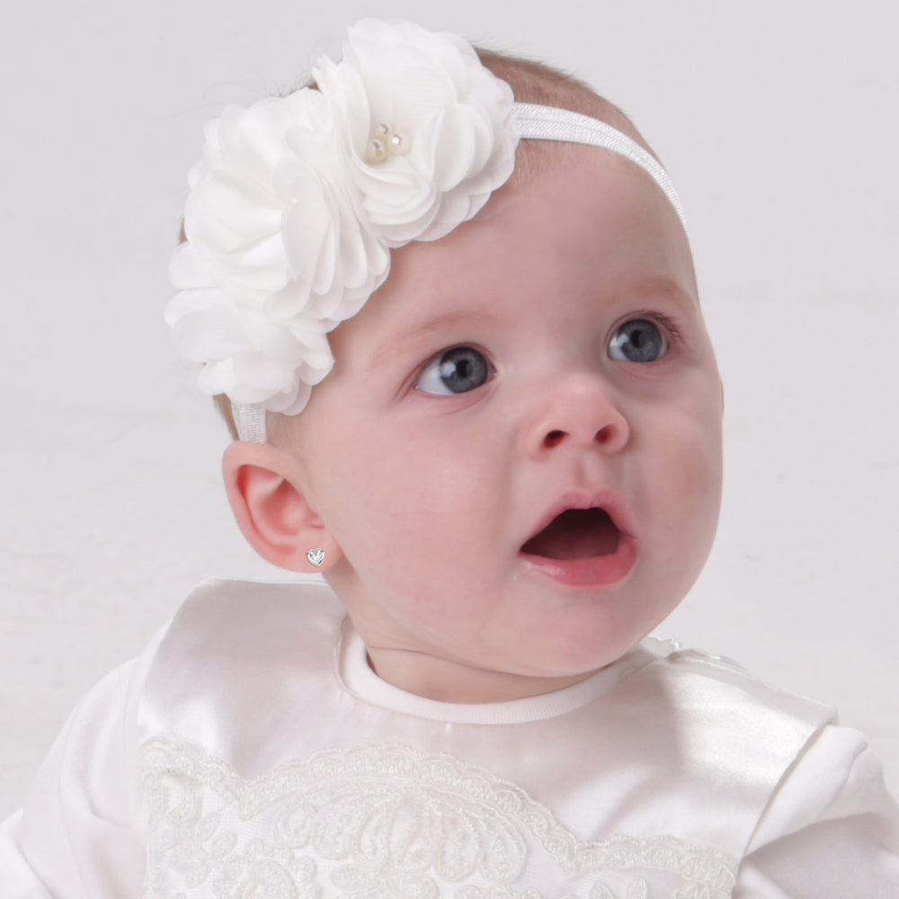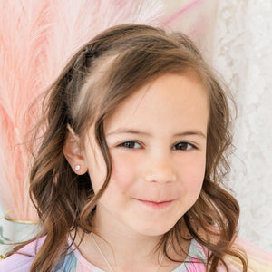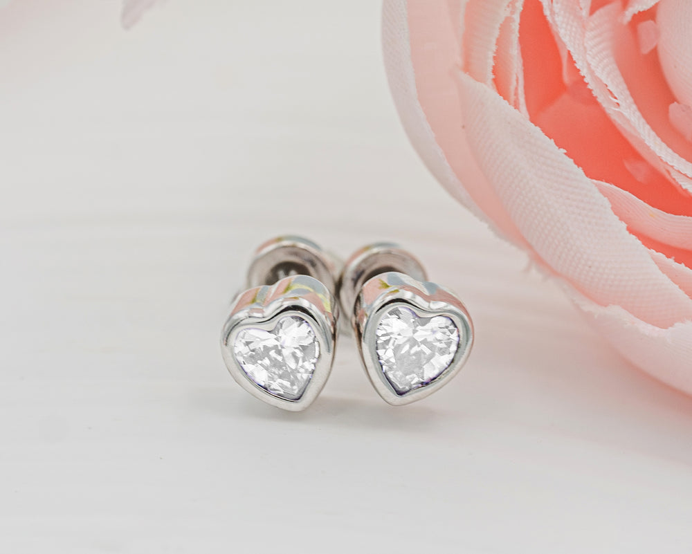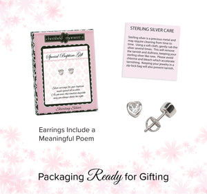 Perfect Baptism Gift! Simple and classic sterling silver CZ heart stud earrings for baptism or christening gift. These sparkling CZ heart shaped earrings have screw backs that are so nice for infants, babies, and toddlers since they stay put and she won't lose them. Earrings are genuine .925 sterling silver and should not irritate sensitive ears. This children's jewelry is rhodium plated to prevent tarnish for everlasting quality and come in a gift box with sweet poem which is the perfect baptism or christening gift for baby girls!