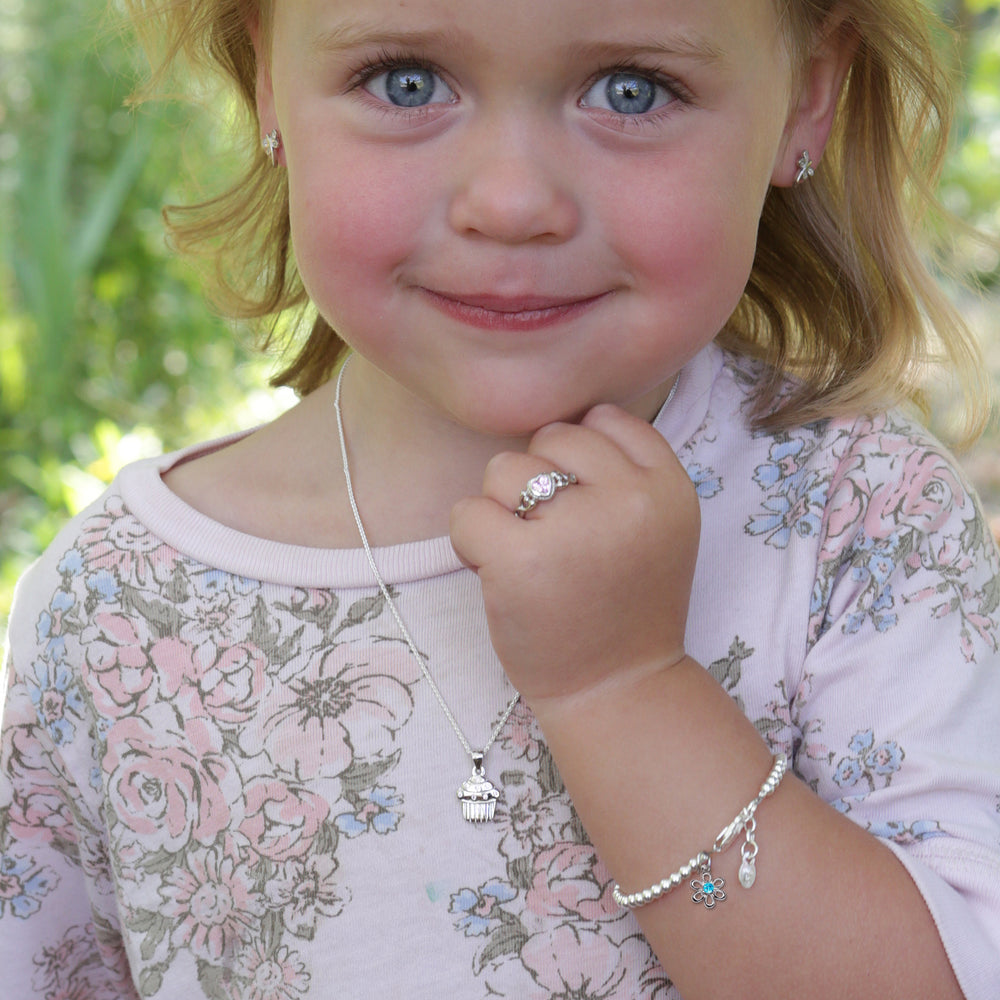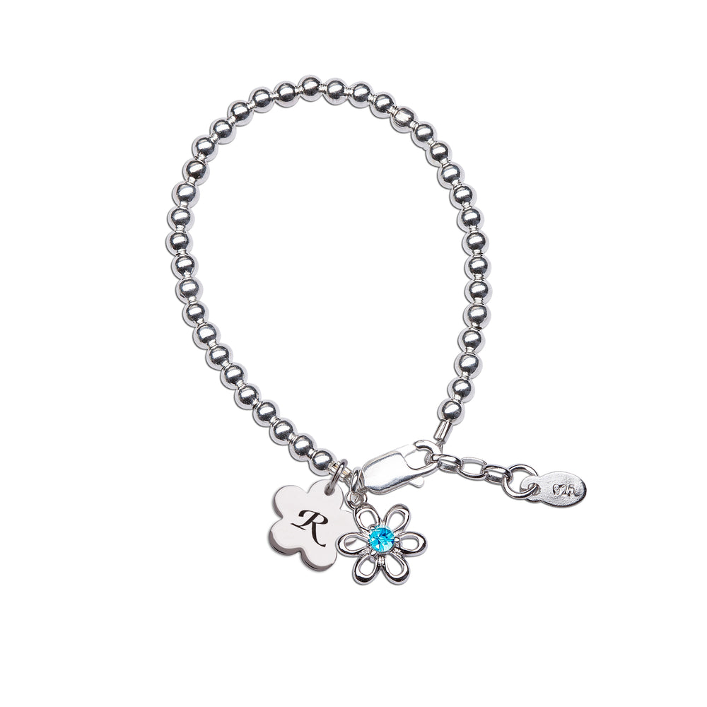 Birthstone Bracelet - Sterling Silver Silver Daisy for Babies and Girls