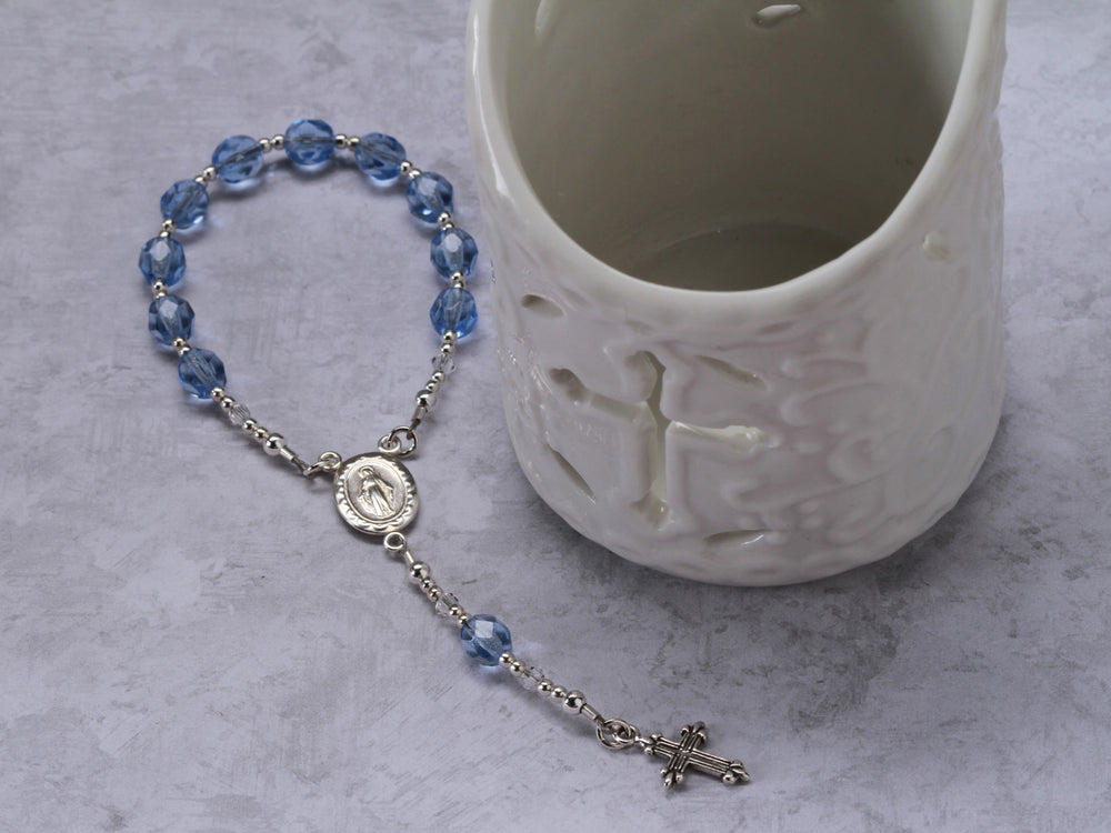 Sterling Silver Blue Baby Rosary Baptism Gift