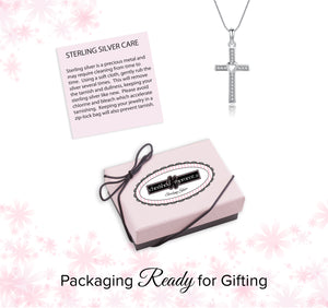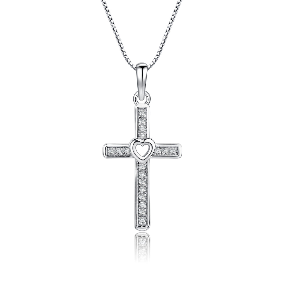 Girls gorgeous sterling silver cross necklace is created with sparkling cubic zirconia stones and accented with a dainty heart in the center. This is available on a 14 inch or 16-18 inch (adjustable) Italian chain with quality lobster claw clasp. Perfect gift for those special occasions and makes a great baptism, christening, dedication, first communion or confirmation. This comes in a beautiful black/pink gift box ready for gifting.