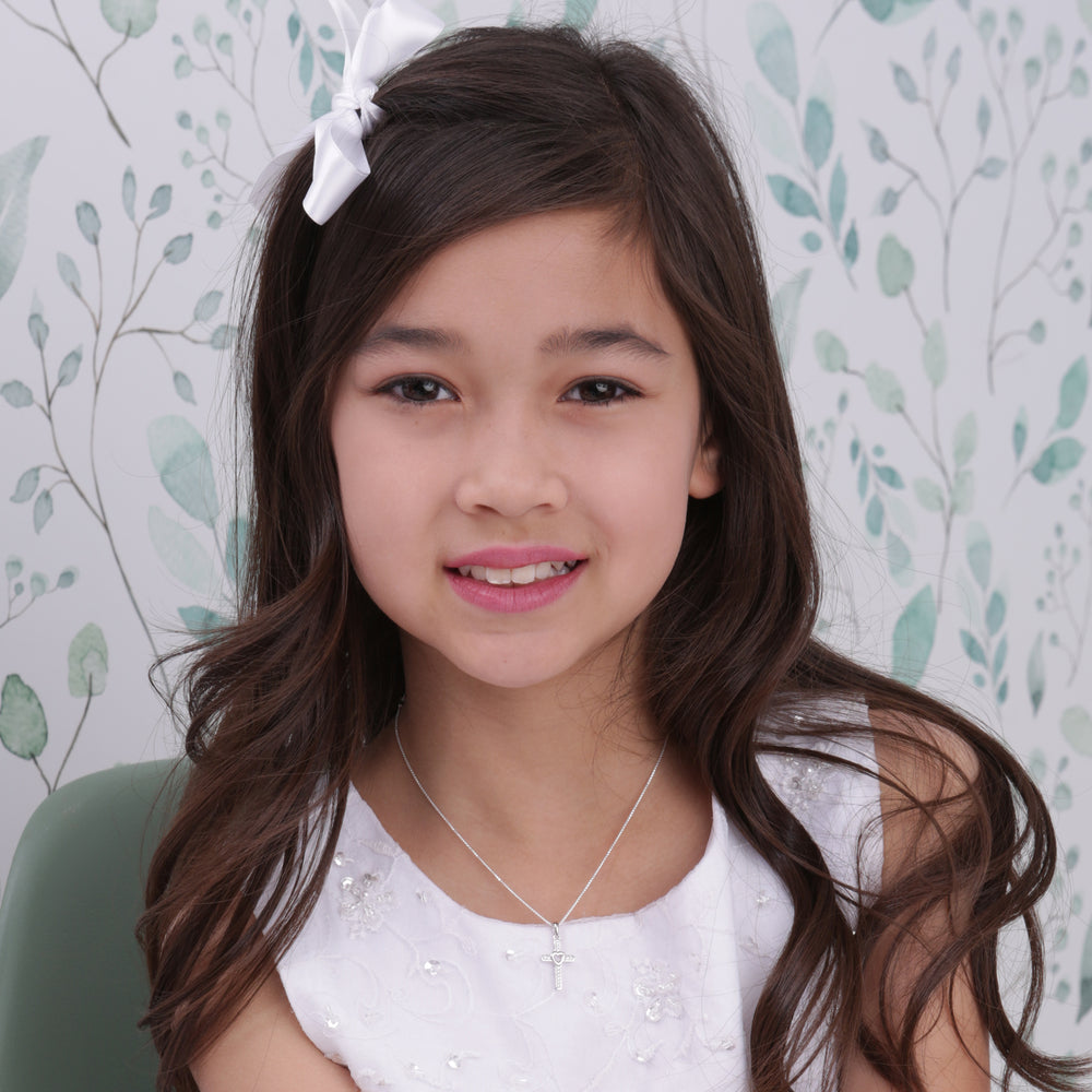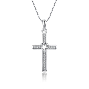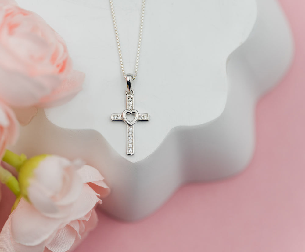 Sterling Silver Children's Cross CZ Necklace with Open Heart