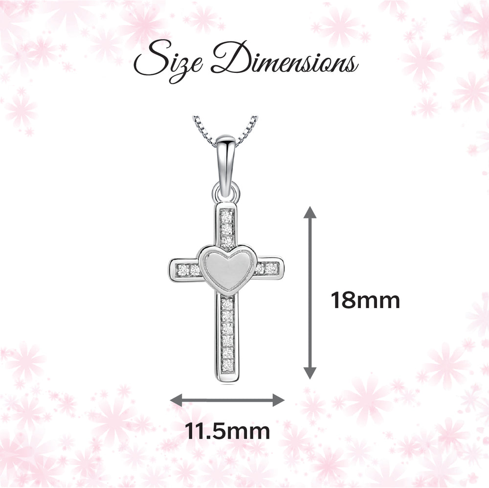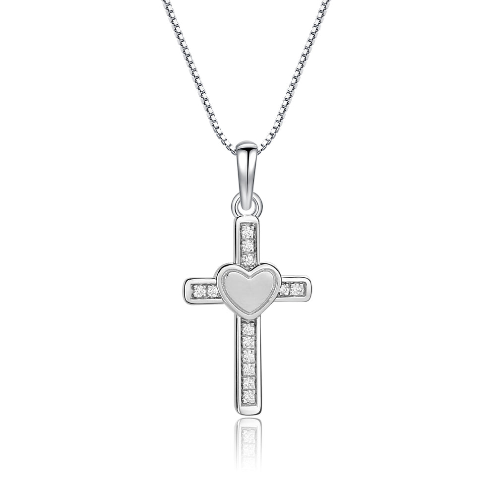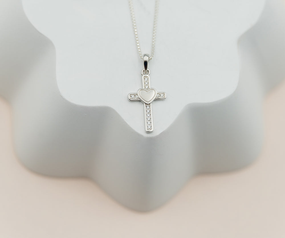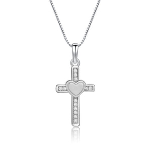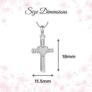 Sterling Silver Children's Cross CZ Necklace with Solid Heart